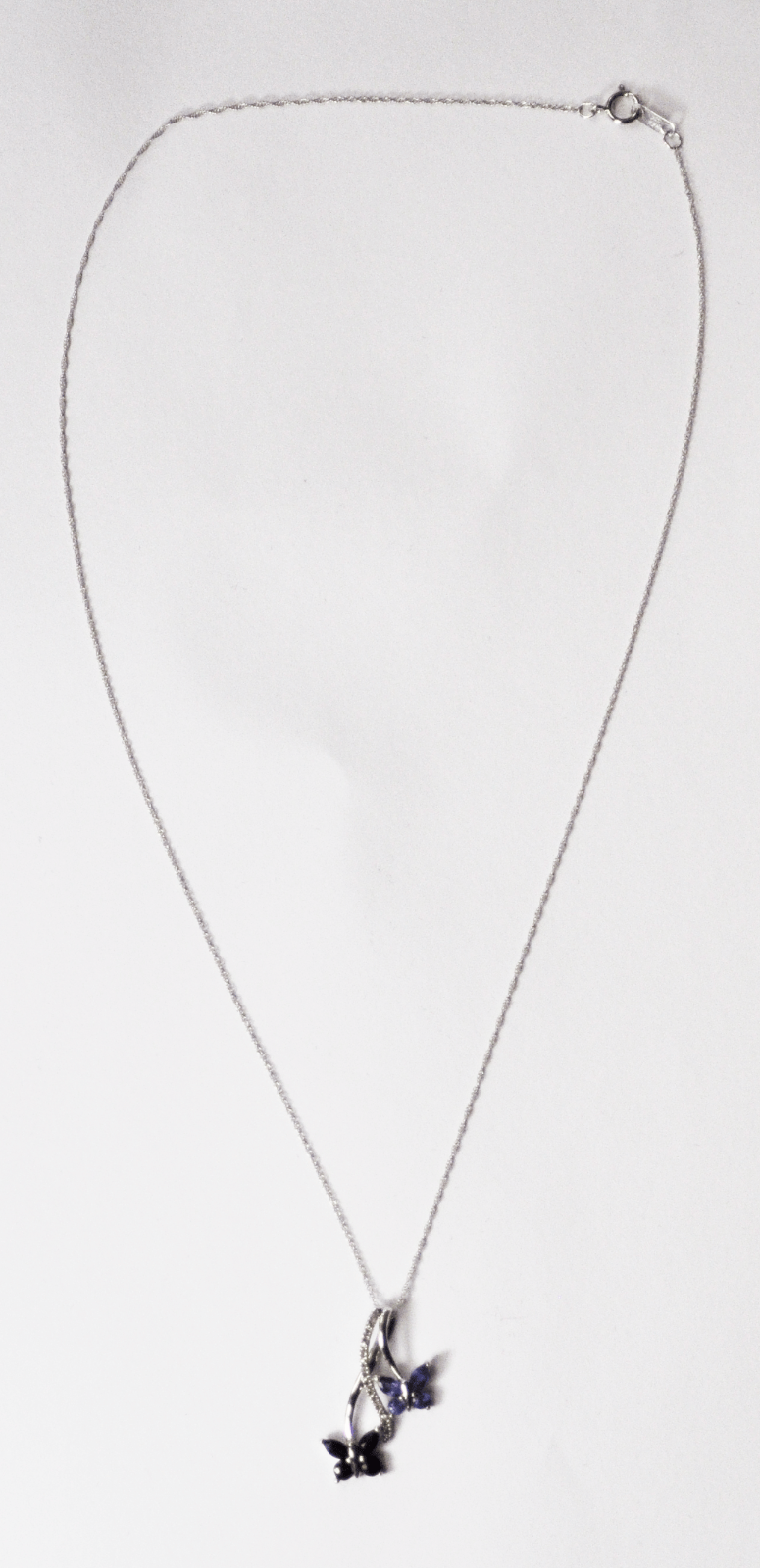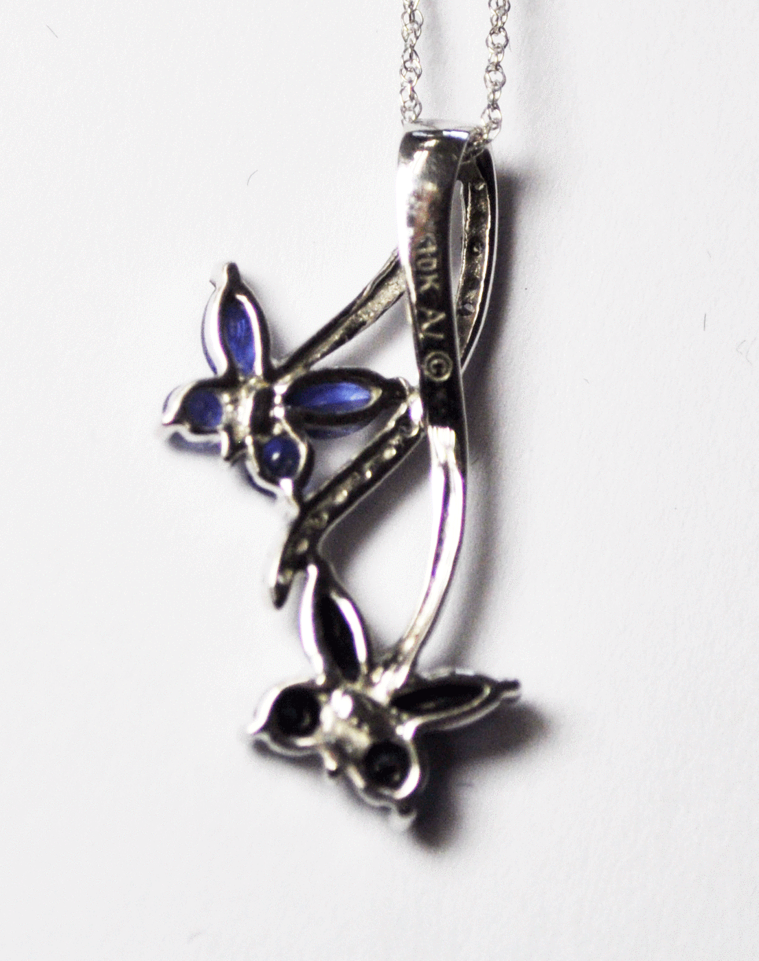 10kwg Alwand Vahan 18" Necklace Blue Sapphire Butterfly Diamond Pendant 27mm