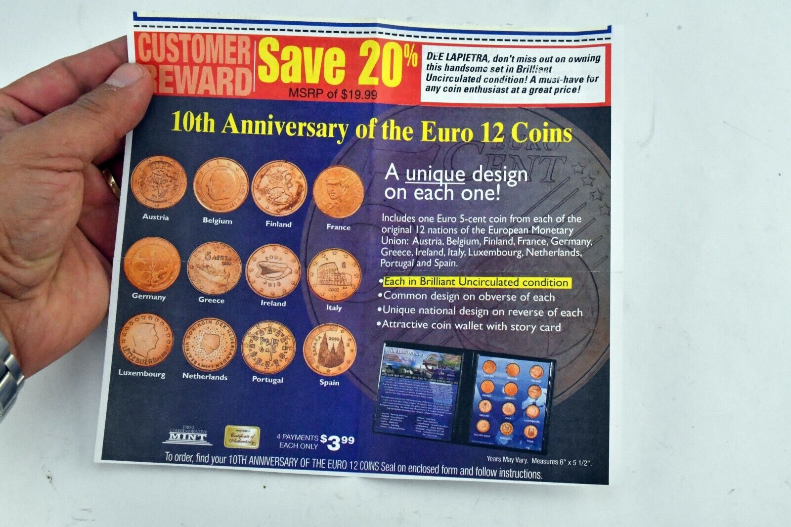 10th Anniversary of the Euro "12" 5 Cent First Commemorative Mint Inc. 12pc set