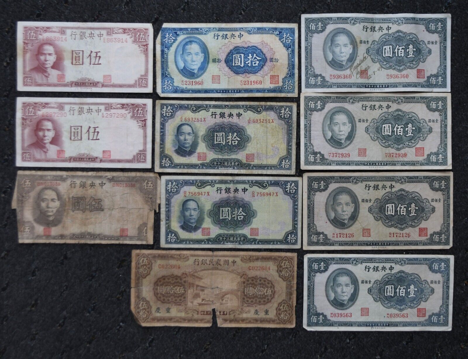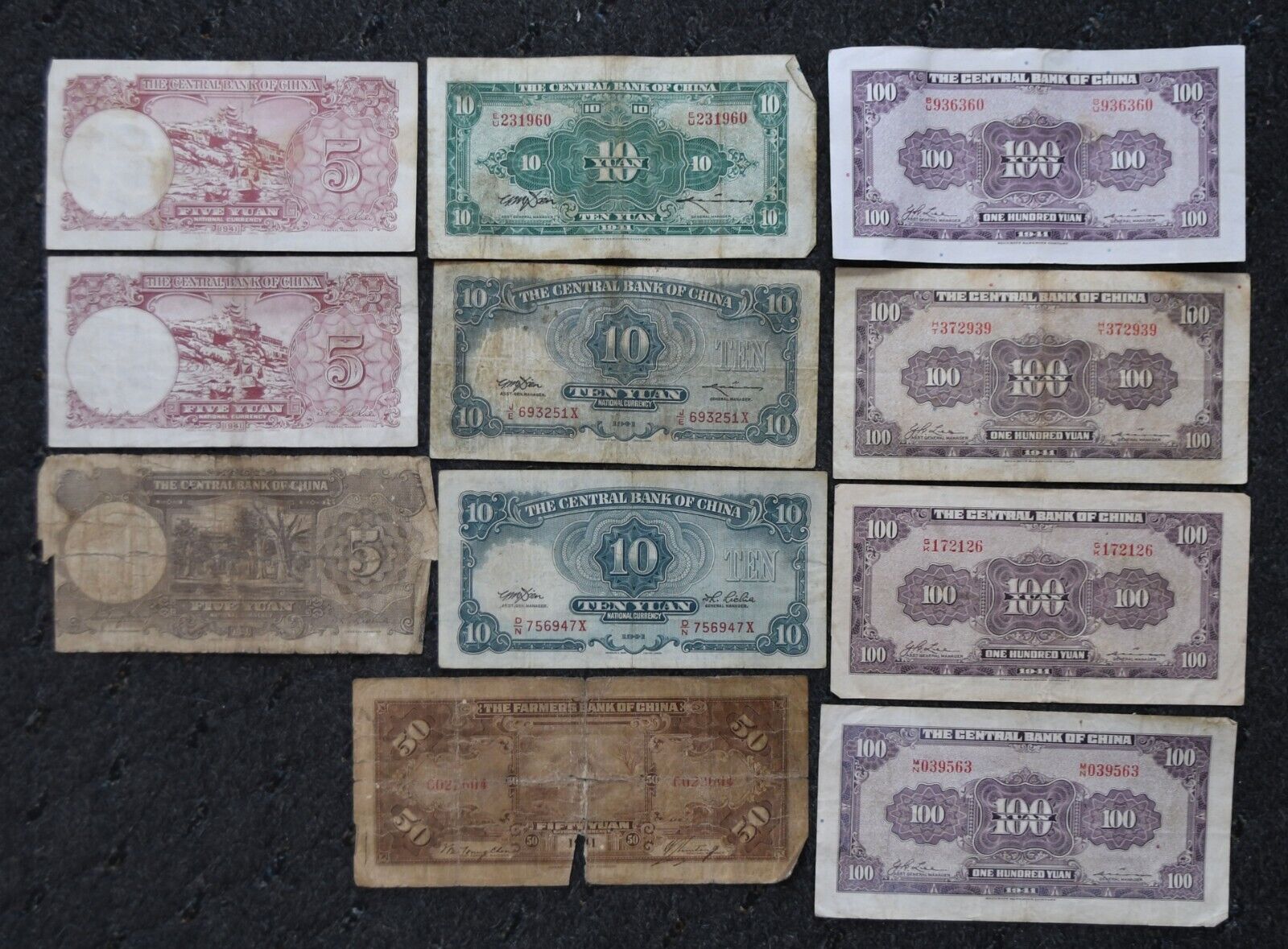 11- 1941 Central Bank of China 5 10 50 & 100 Yuan Notes