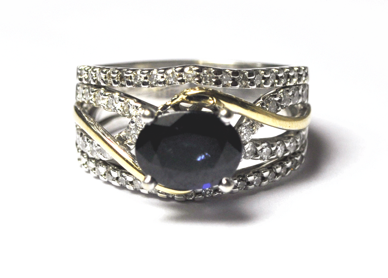 14k White Gold Sapphire Diamond Twist Overlapping Ring F.D. 11mm Size 6-3/4