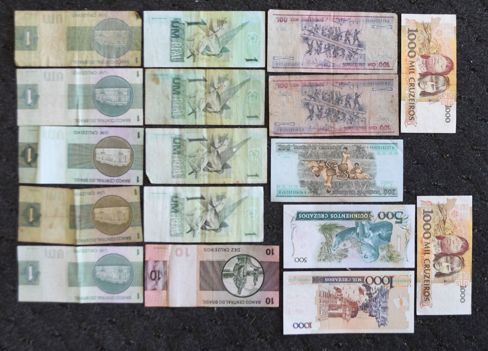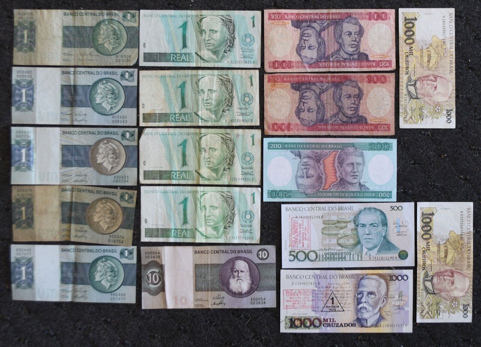 17 Brazil Banknotes 1970-1994 1 10 100 200 500 & 1,000 Real Cruzeiros Cruzados