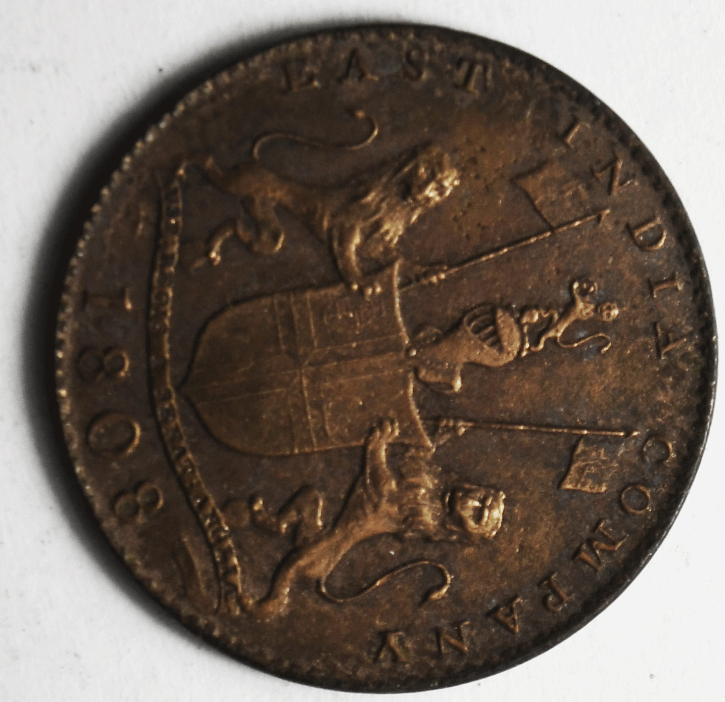 1808 India-British Madras Presidency 10 Cash KM# 320