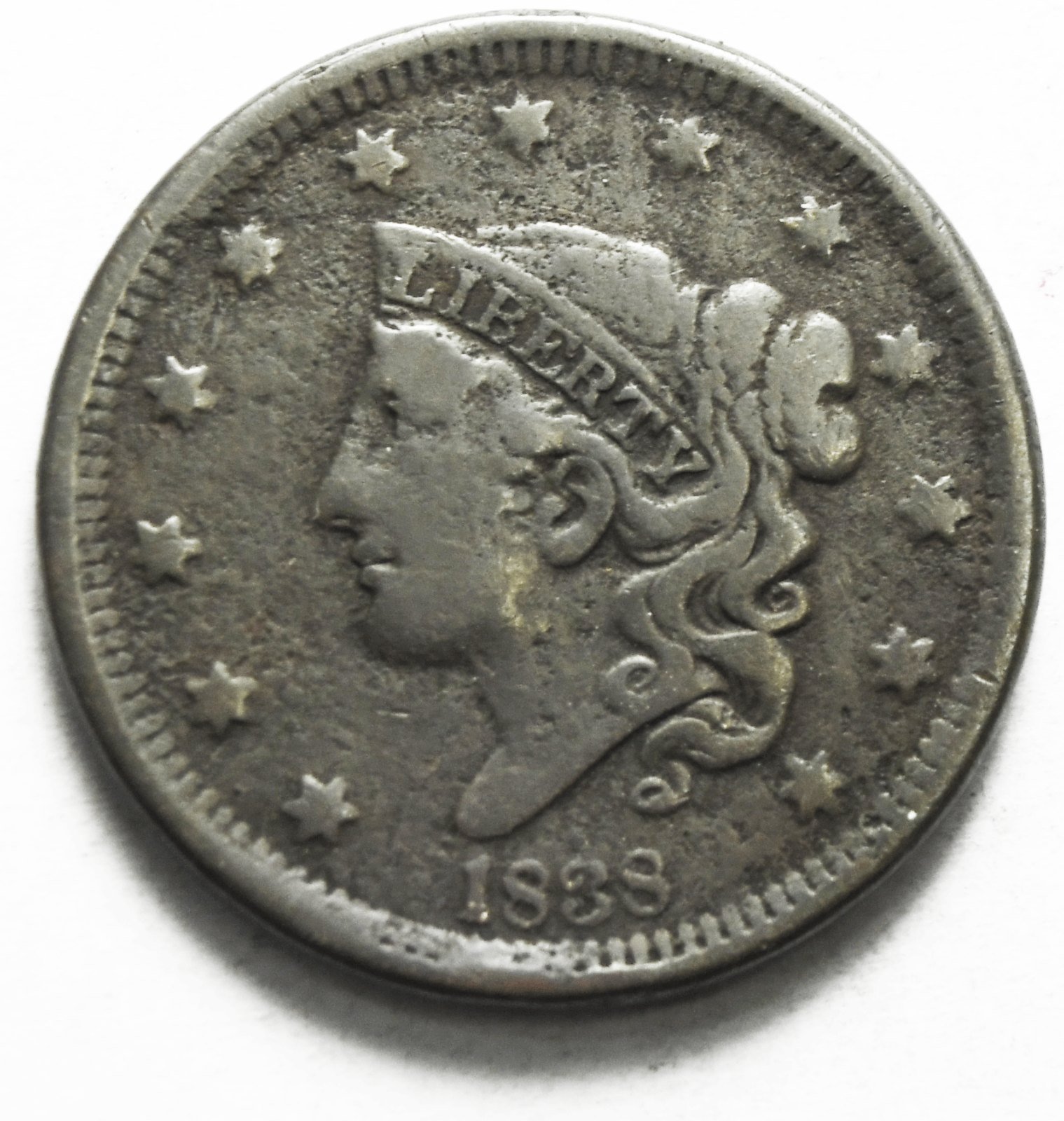 1838 1c Braided Hair Large Cent One Penny US Coin