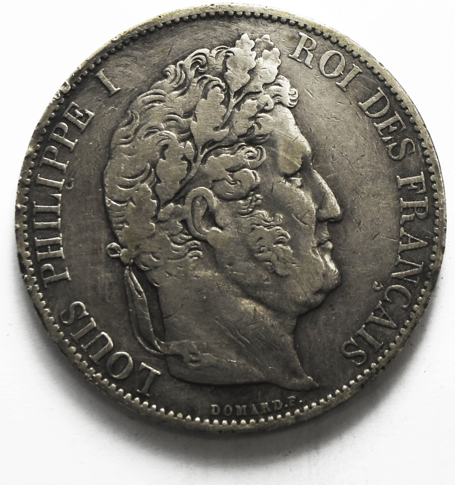 1844 A France 5 Five Francs Silver Coin KM# 749.1