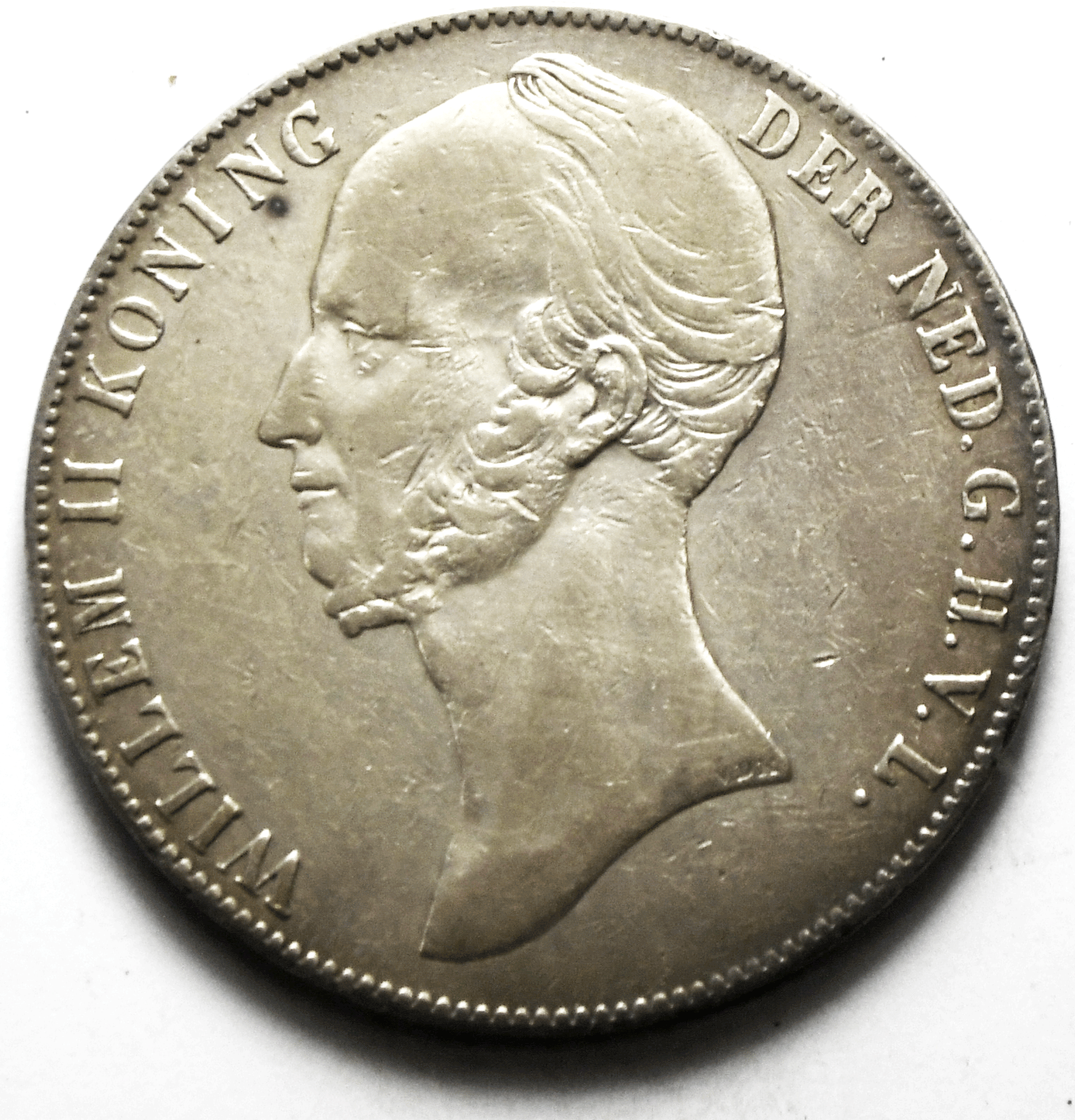 1845 Netherlands 2-1/2 Silver Gulden KM# 69.2 No Dot or Dash