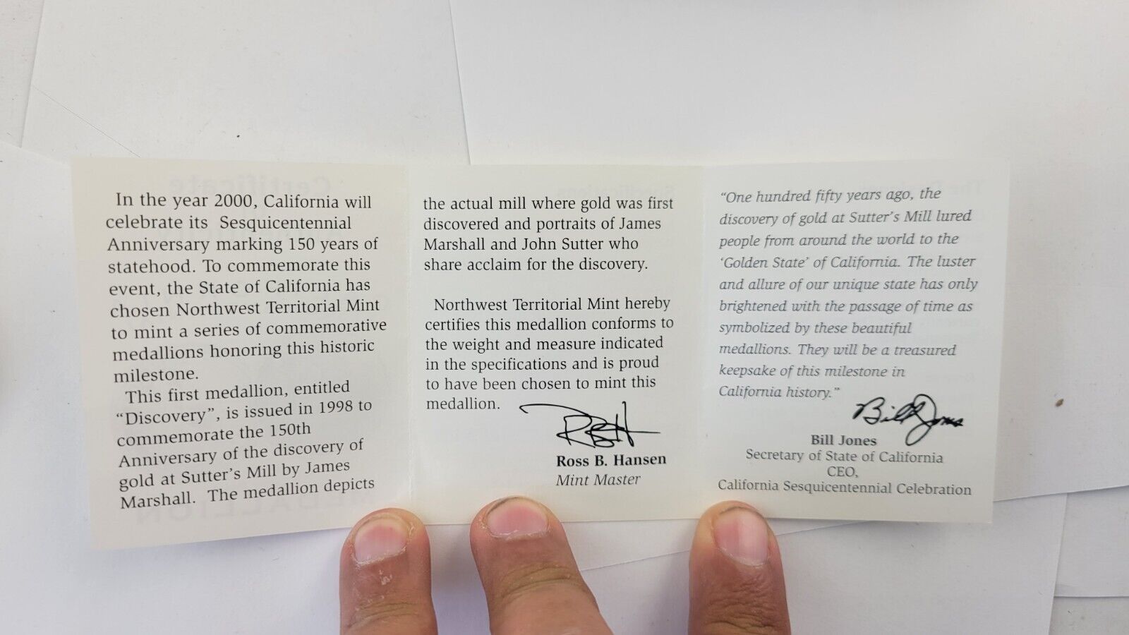 1848-1998 Gold Discovery California Sesquicentennial 1oz .999 Fine Silver Boxed