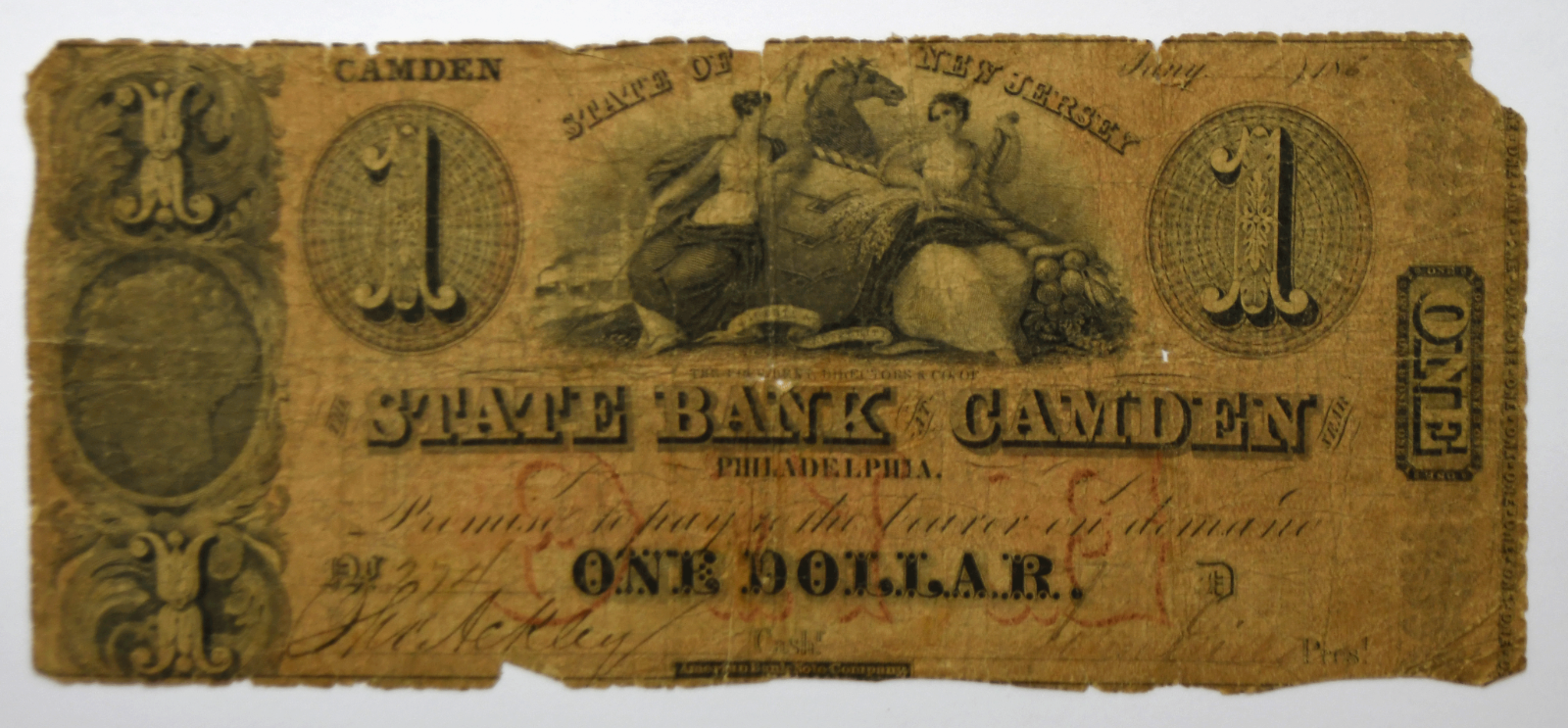 1862 State Bank Camden $1 One Dollar Obsolete Note Philadelphia