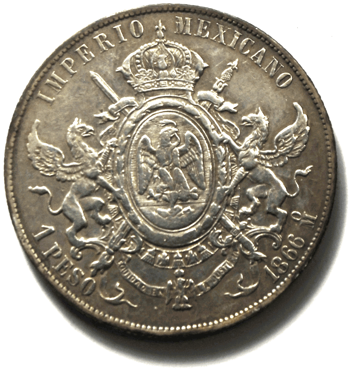 1866 Mo Mexico Empire Of Maximilian Peso KM# 388.1 Silver Coin Cleaned