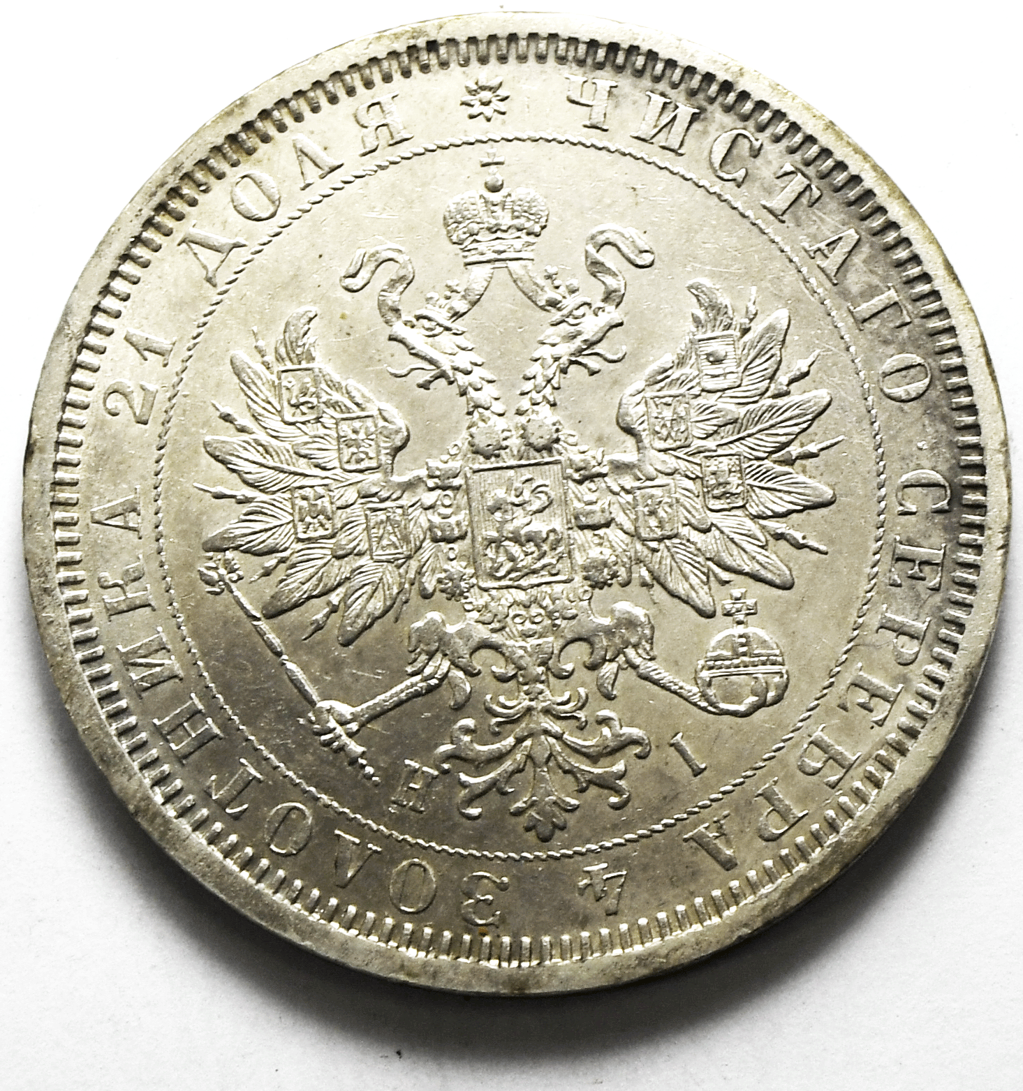 1877 СПБ ΗІ Russia One Rouble Silver Coin AU Y# 25