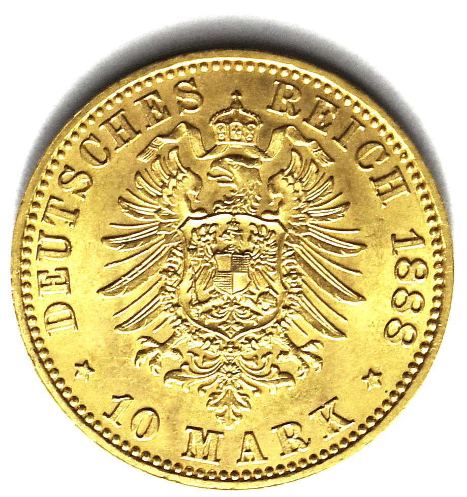 1888 A German States Prussia 10 Ten Mark Gold Coin KM# 514 Uncirculated