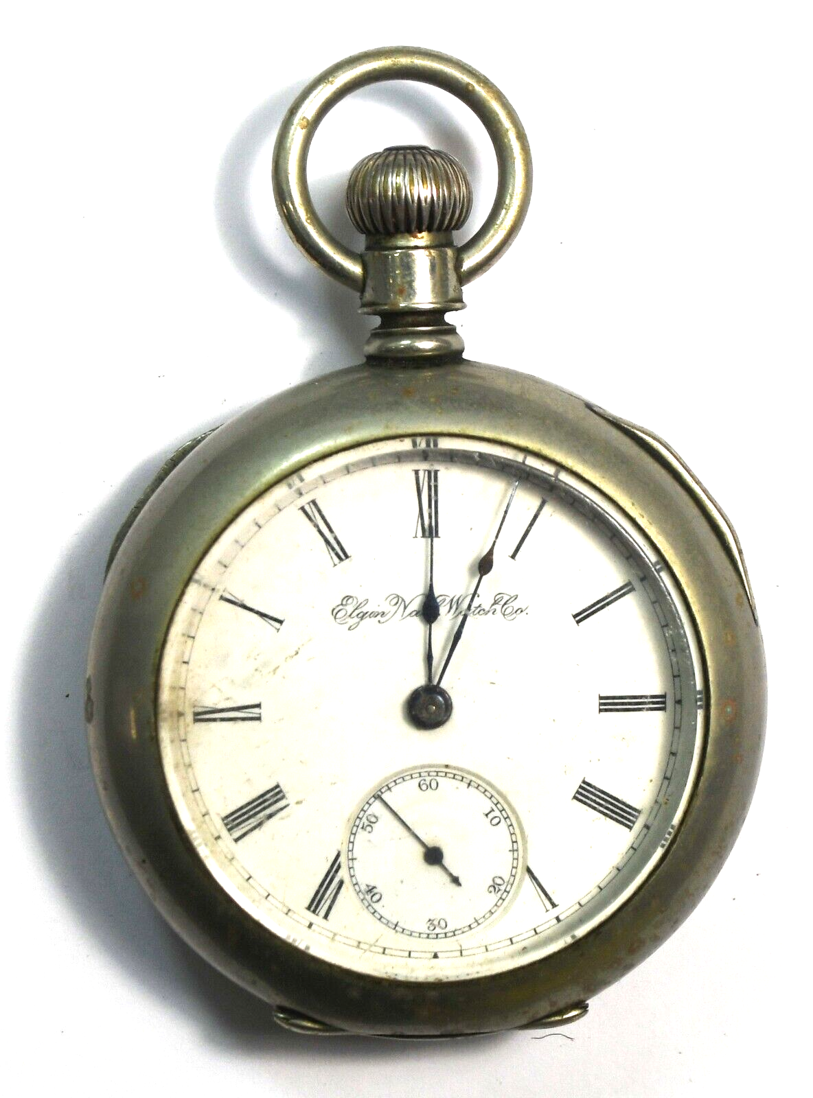 1891 Elgin Grade 74 Size 18 Open Face Pocket Watch NR Paperwork in Case Back