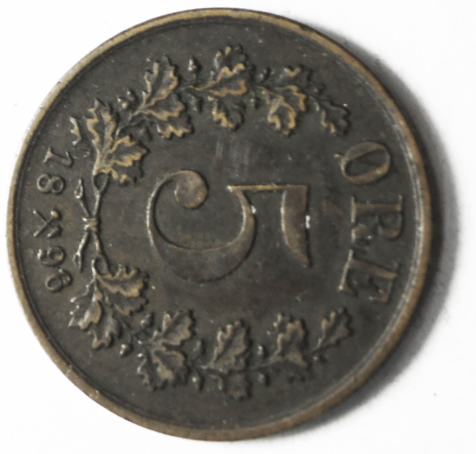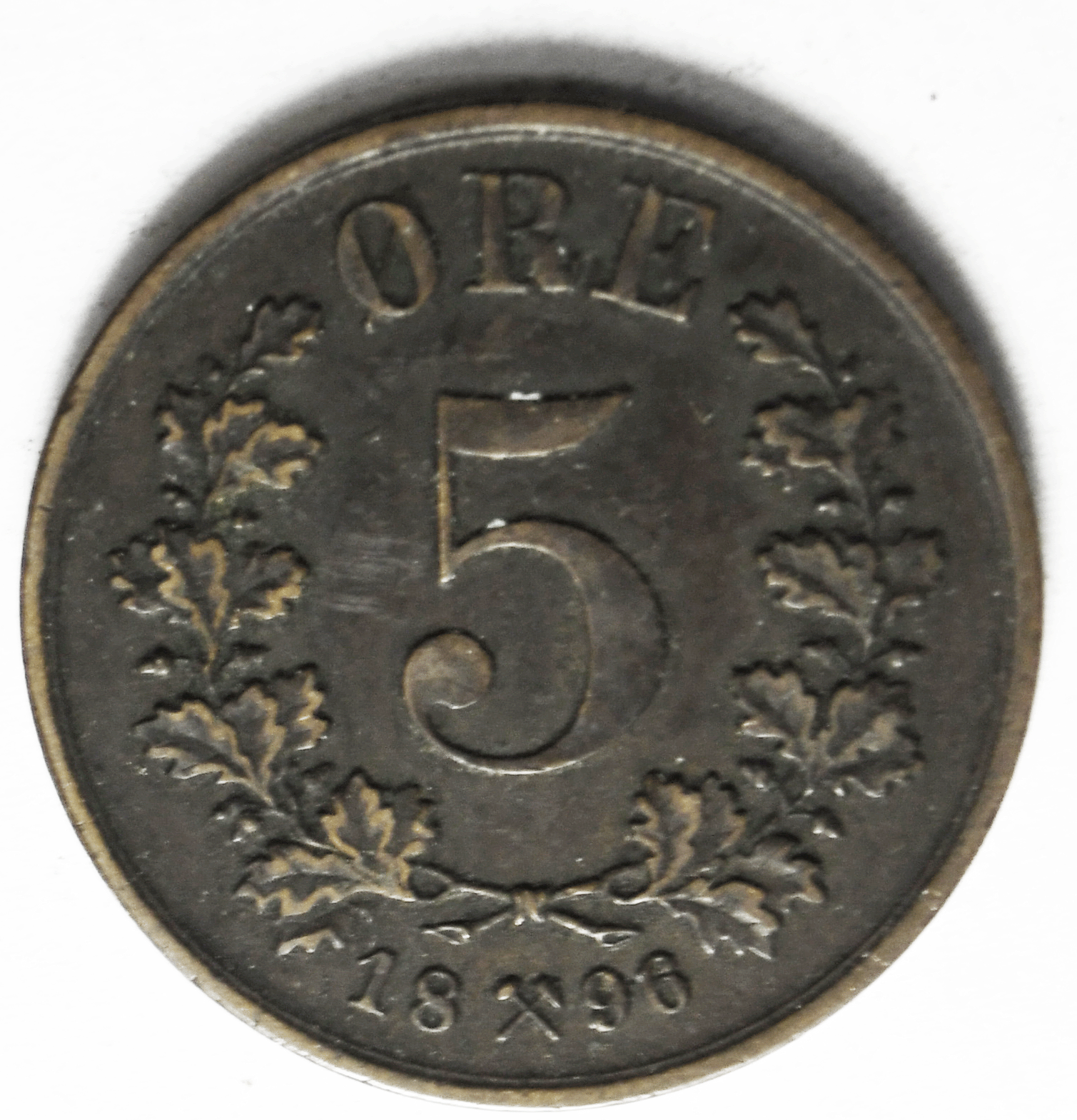 1896 5 Five Ore Norway Bronze Coin KM# 349