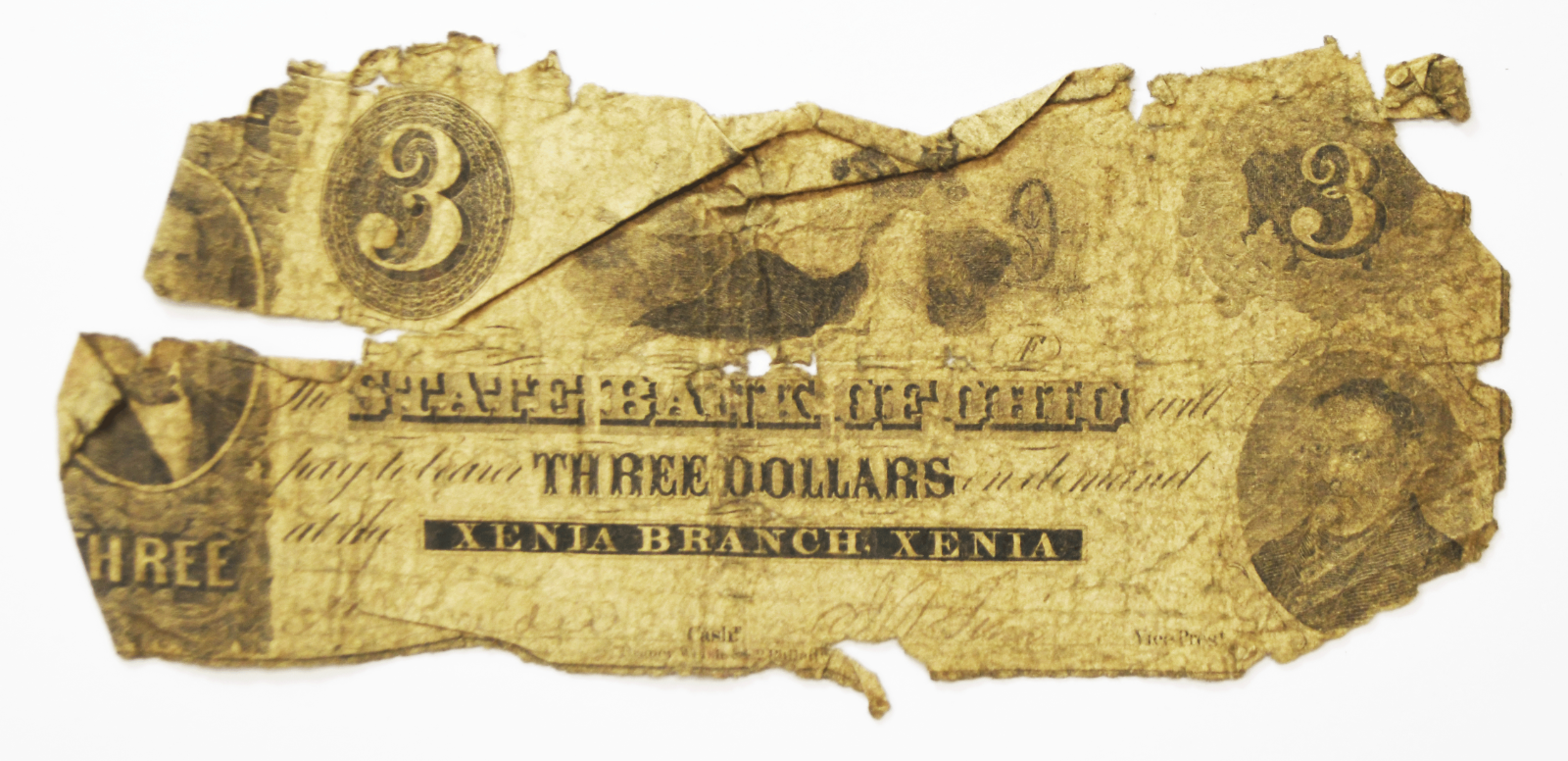 18__ $3 State Bank of Ohio Three Dollars Xenia Branch Obsolete Note