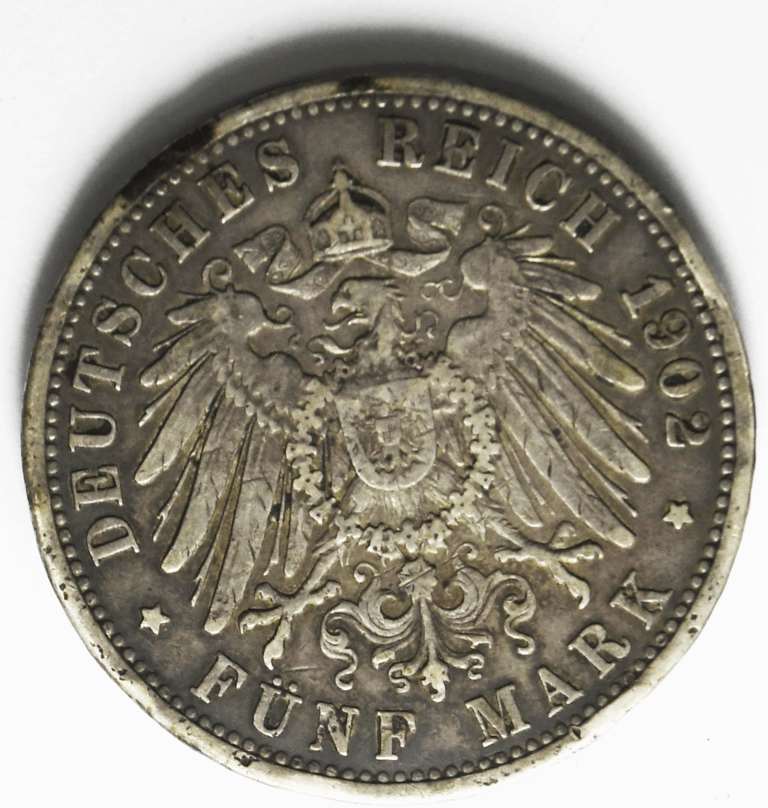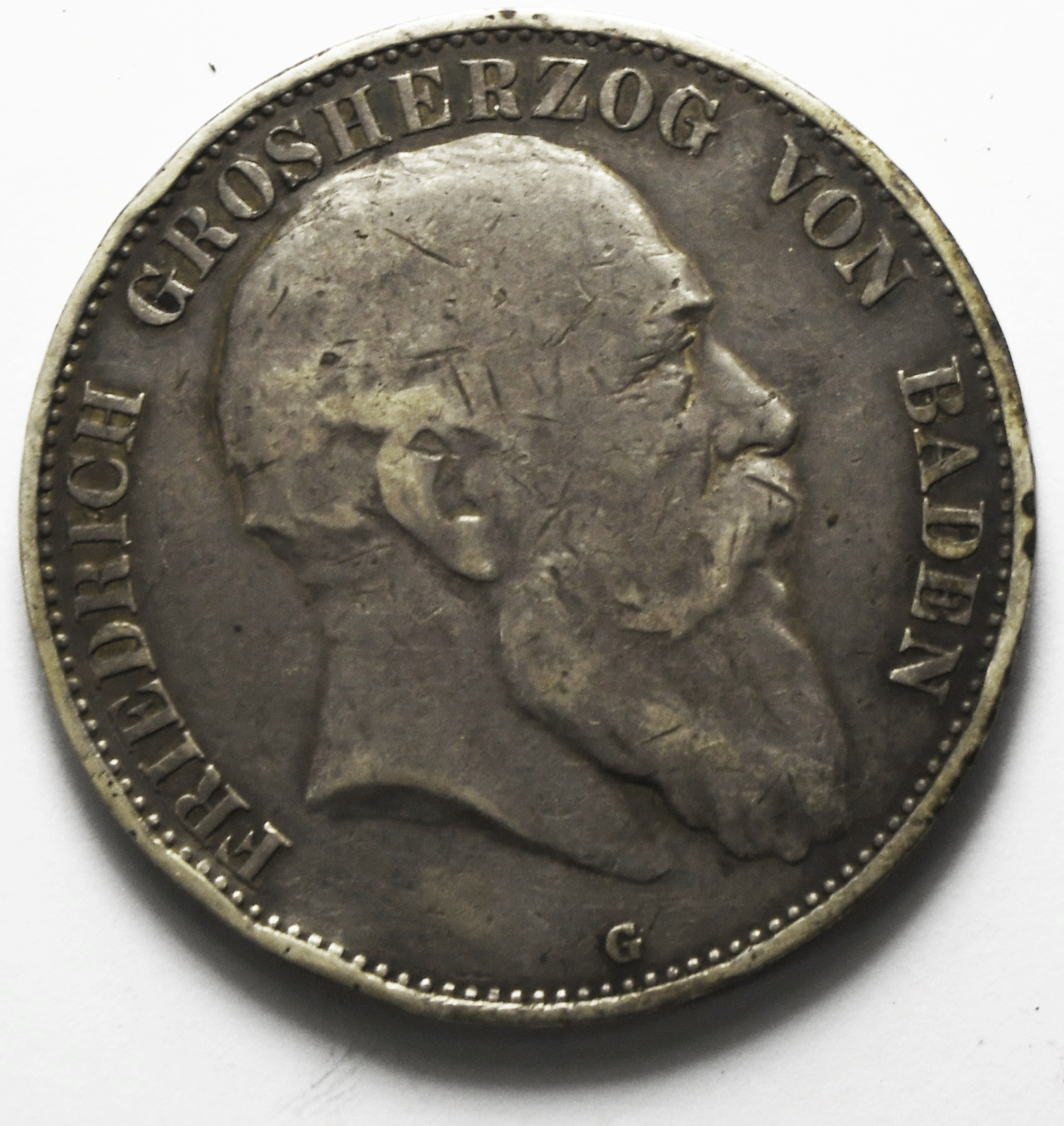 1902 G German States Baden 5 Five Mark Silver Coin KM# 274 Low Mintage Rim Dings
