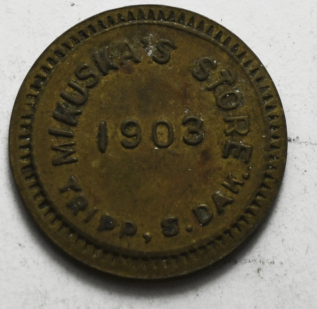 1903 Tripp South Dakota 1903 Mikuska's Store 5 Cents Trade Token 19mm