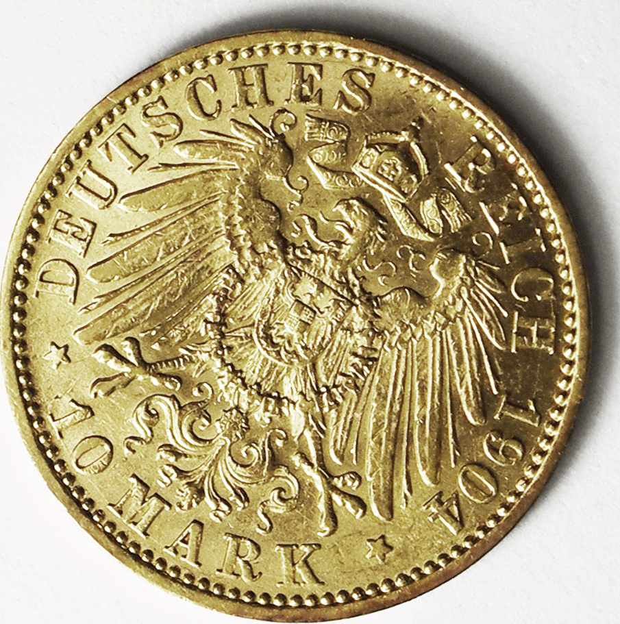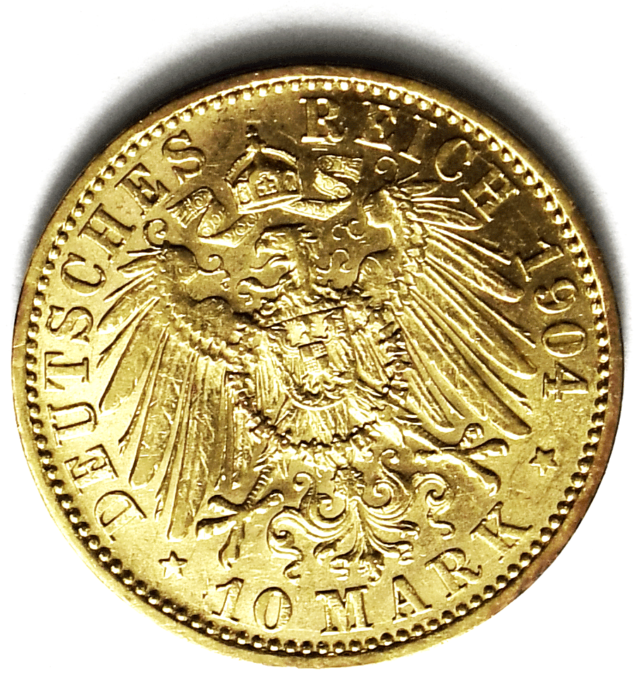 1904 A German States Prussia 10 Ten Mark Gold Coin KM# 520 AU