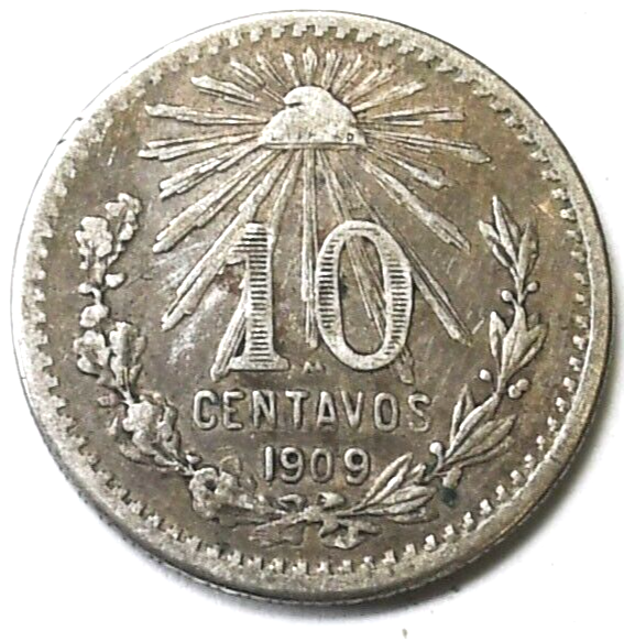 1909 Mexico Estados Unidos Mexicanos 10 Ten Centavos Silver Coin KM# 438