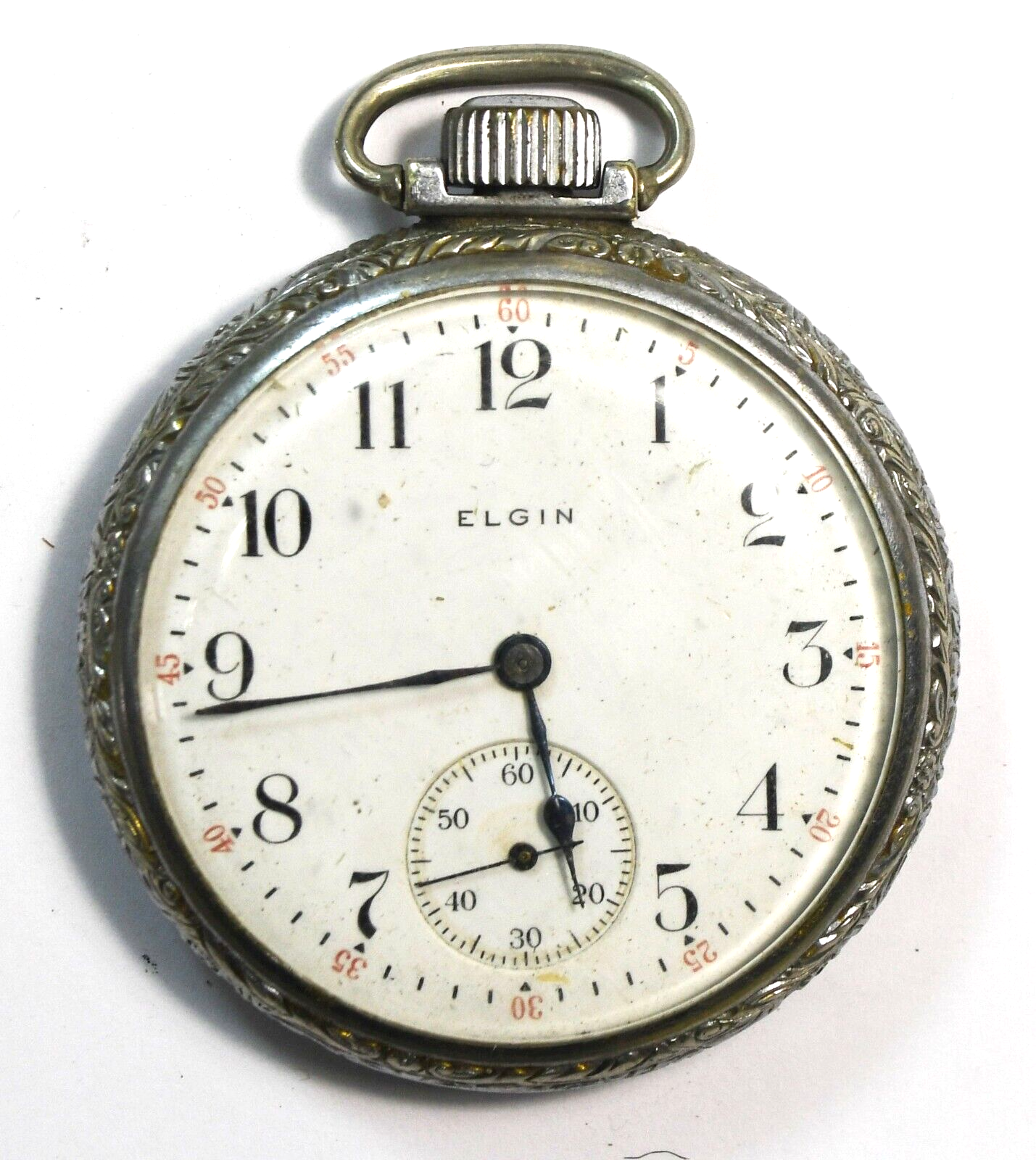 1912 Elgin 313 Size 16 Open Face Pocket Watch Spartan Case