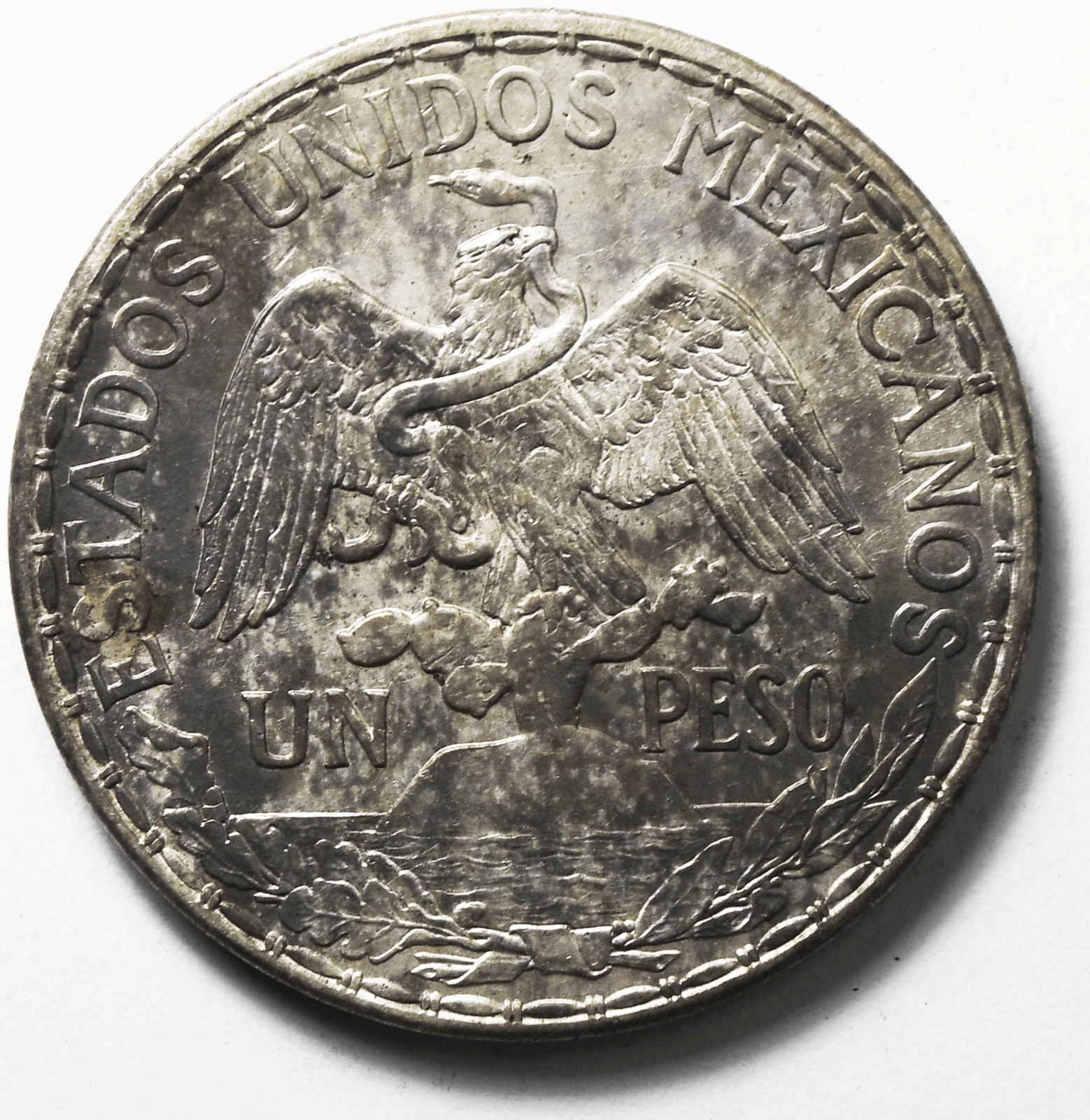 1913 Mexico Silver One Peso Coin KM#453 AU Rare