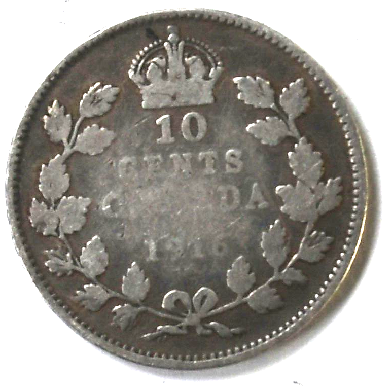 1916 Canada 10c Ten Cents Silver Coin Dime KM# 23