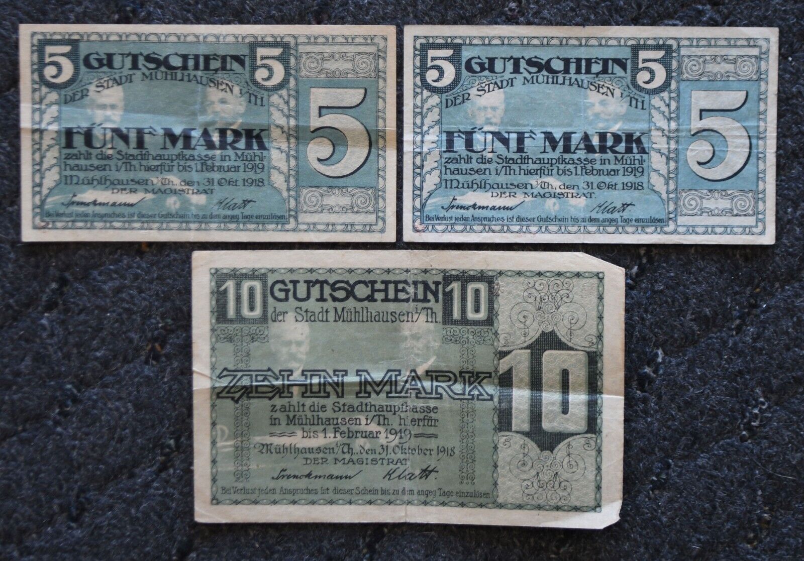 1918 Germany Notgeld 5 & 10 Mark Muhlhausen Notes
