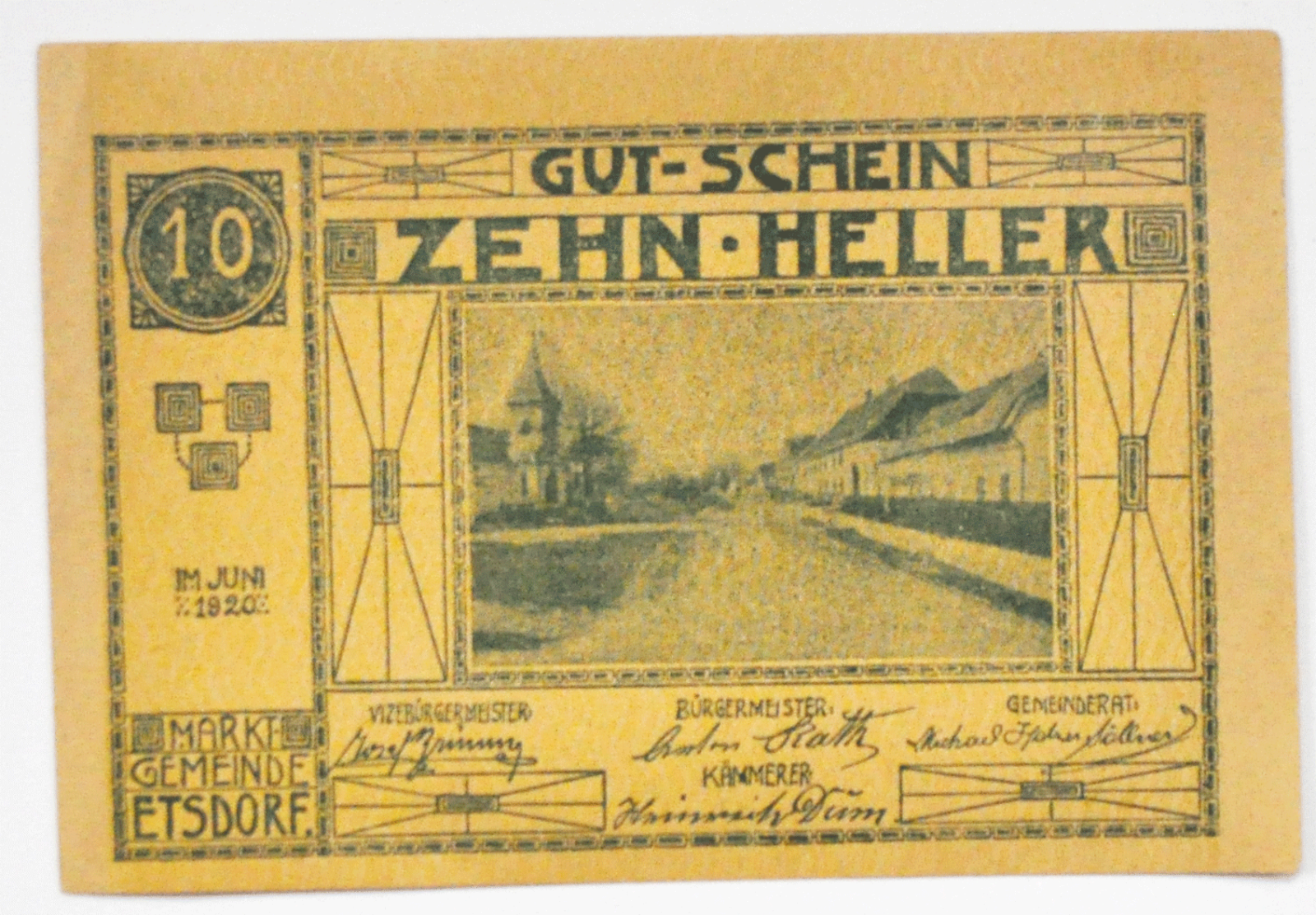 1920 10 Heller Austria Notgeld Banknote Etsdorf
