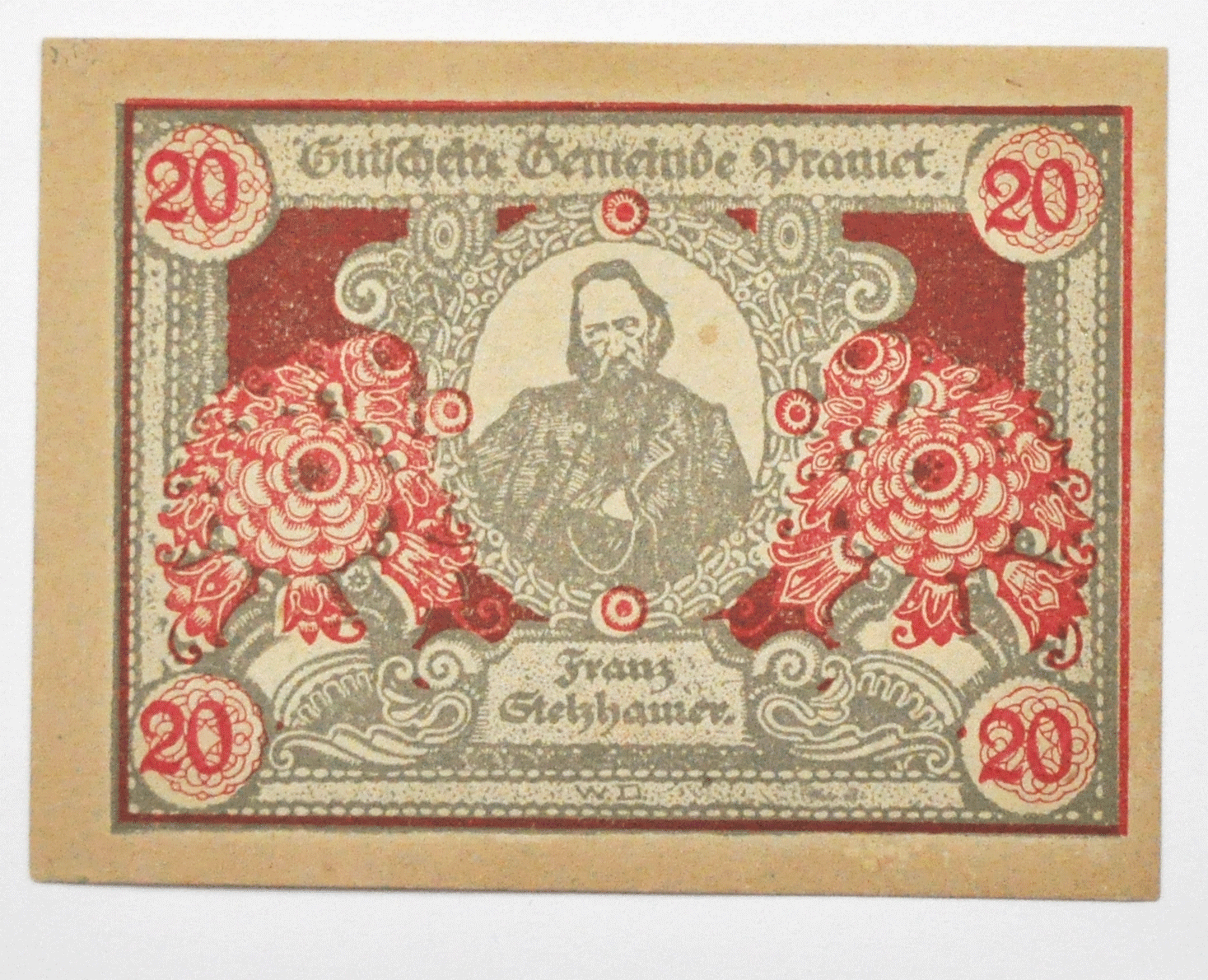 1920 20 Twenty Heller Austria Notgeld Banknote Pramet Uncirculated