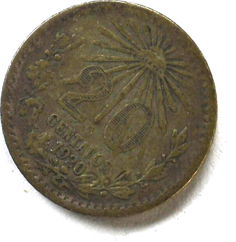 1920 Mexico Estados Unidos Mexicanos 20 Twenty Centavos Silver Coin