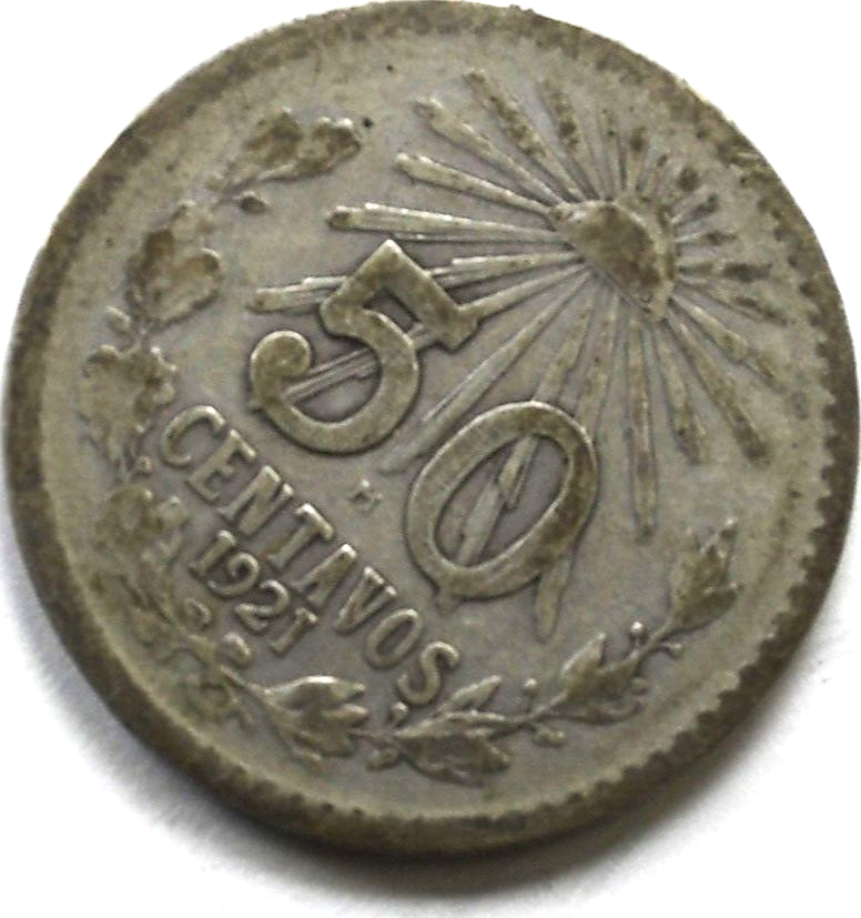 1921 Mexico Estados Unidos Mexicanos Fifty 50 Centavos Silver Coin KM# 447