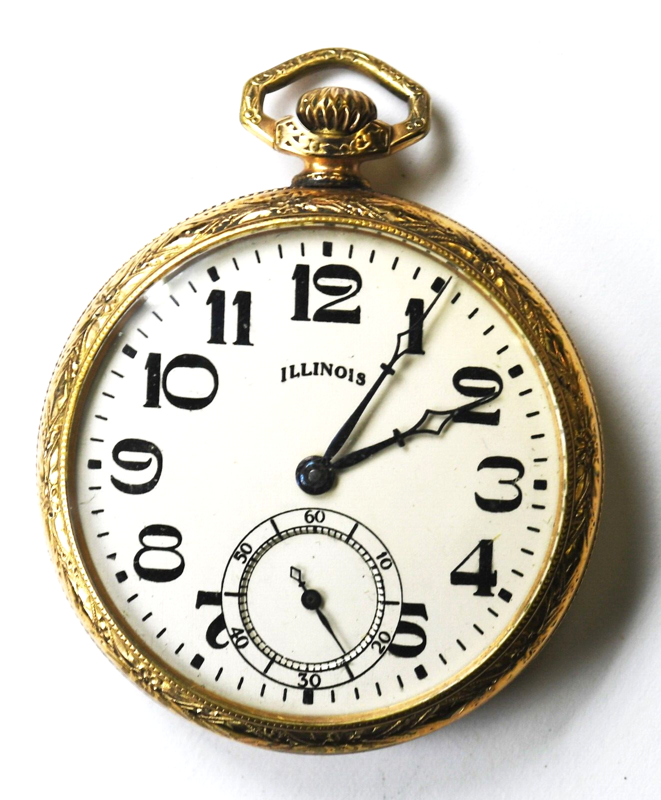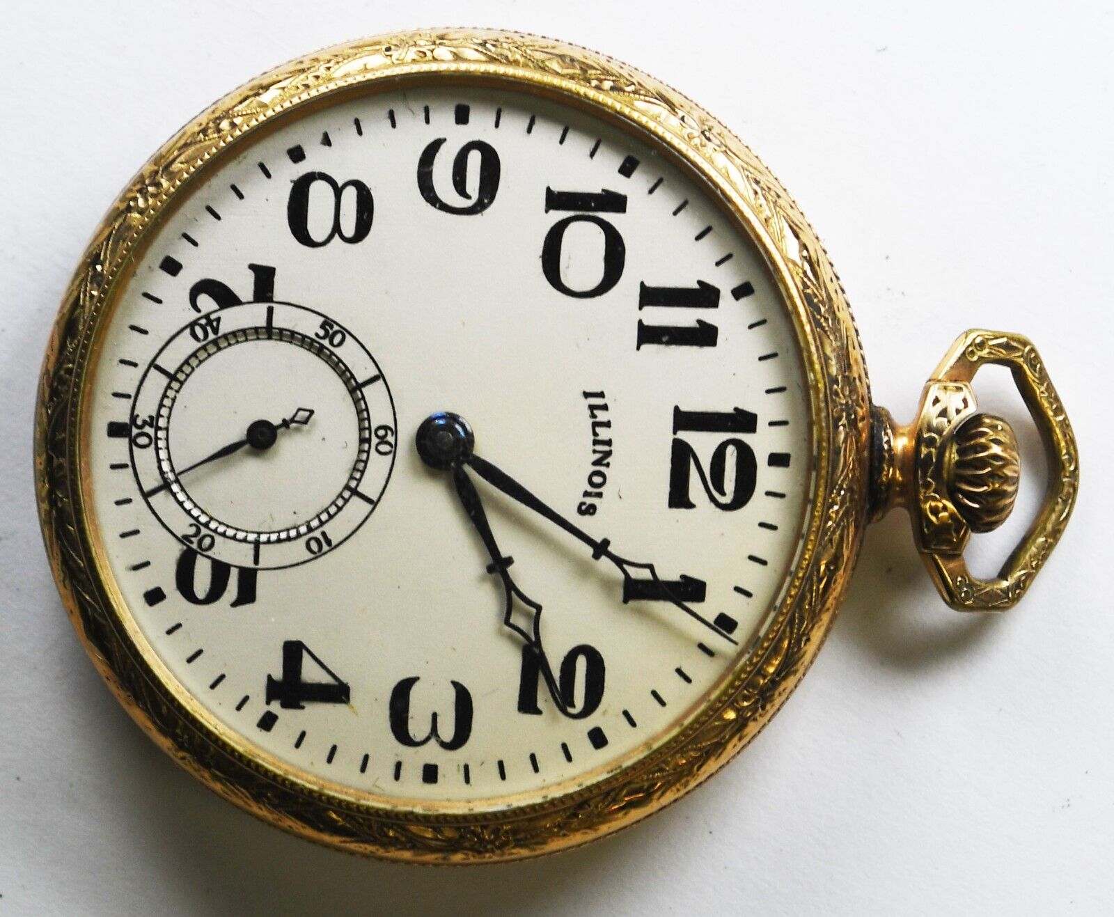 1924 Illinois Size 12 Grade 405 OF Time King Deco GF Pocket Watch Matte Dial