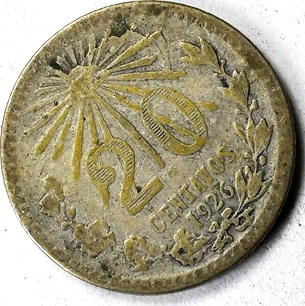 1926 Mexico Estados Unidos Mexicanos 20 Twenty Centavos Silver Coin KM# 438