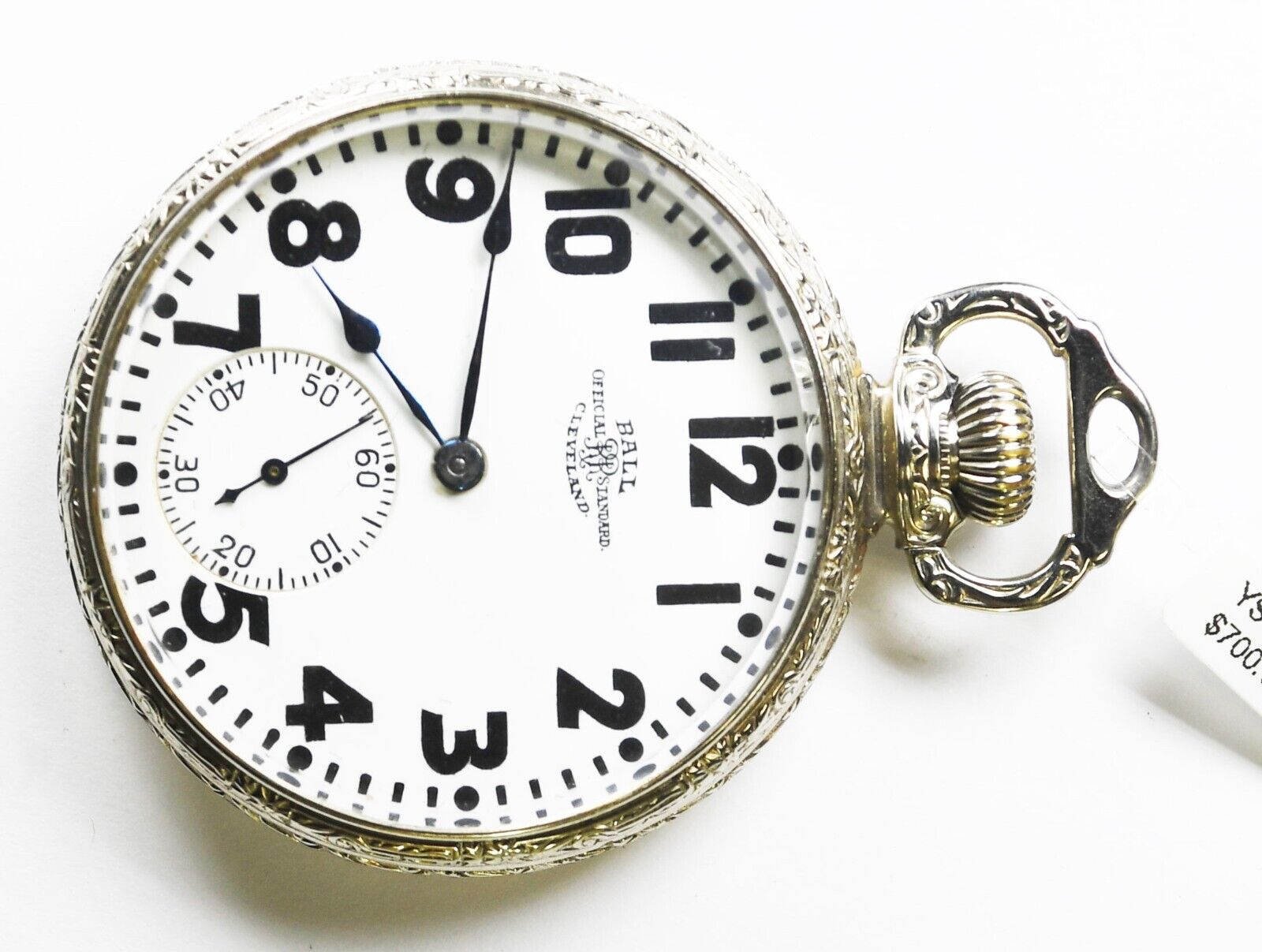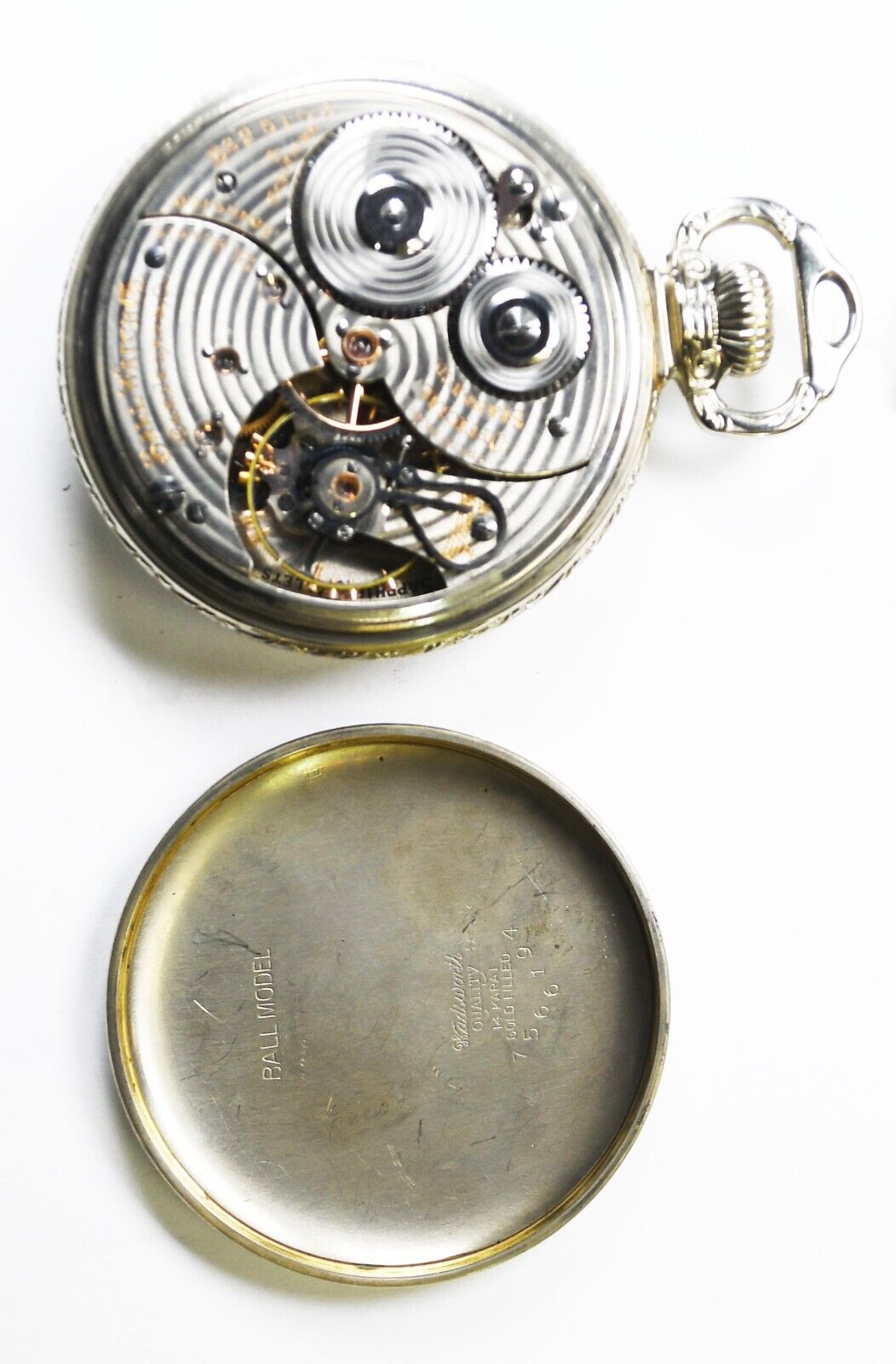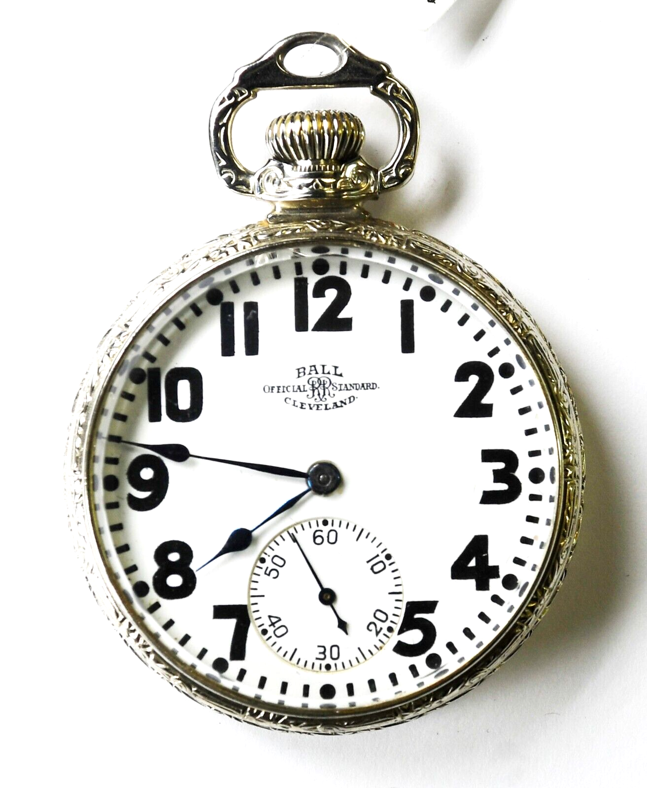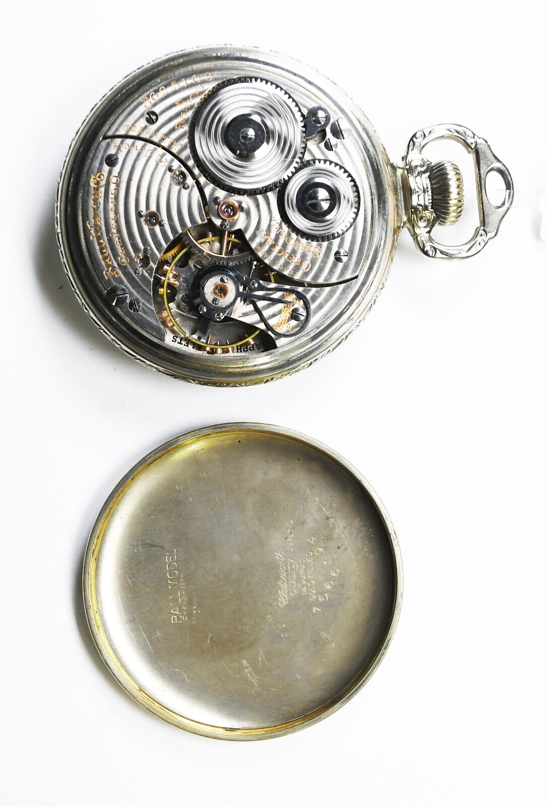 1927 Ball Hamilton Grade 999P Pocket Watch OF Ball Model White GF Case 21J RR LS