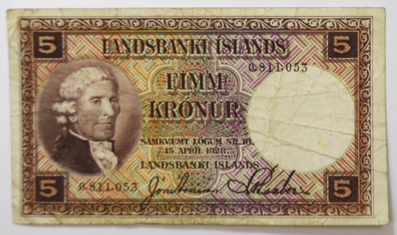 1928 Landsbanki Islands Iceland Fimm 5 Kronur Note 0.811.053