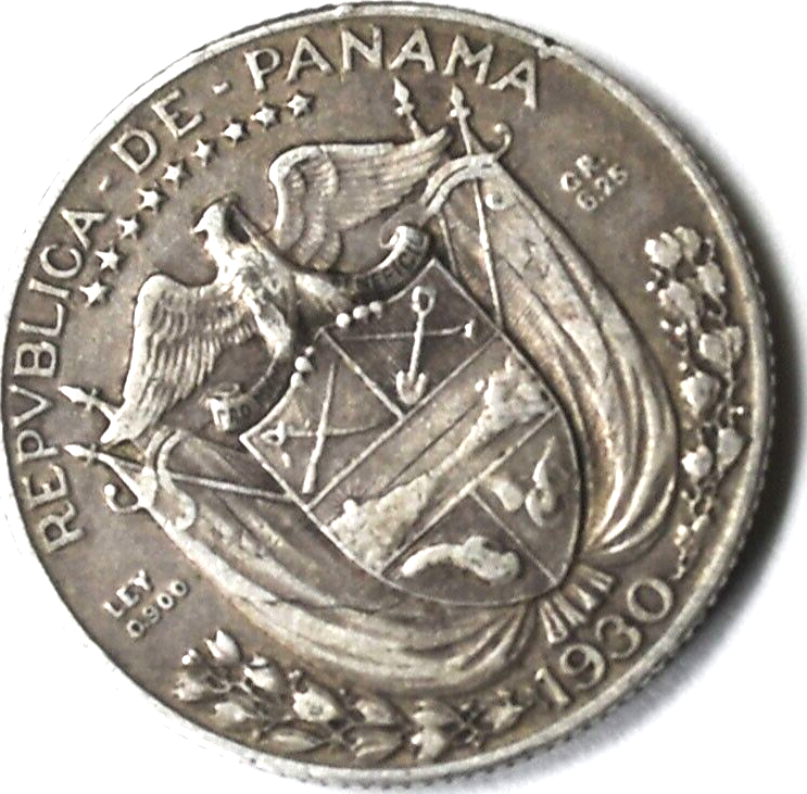 1930 Panama 1/4 Quarter Balboa Silver Coin KM# 11.1