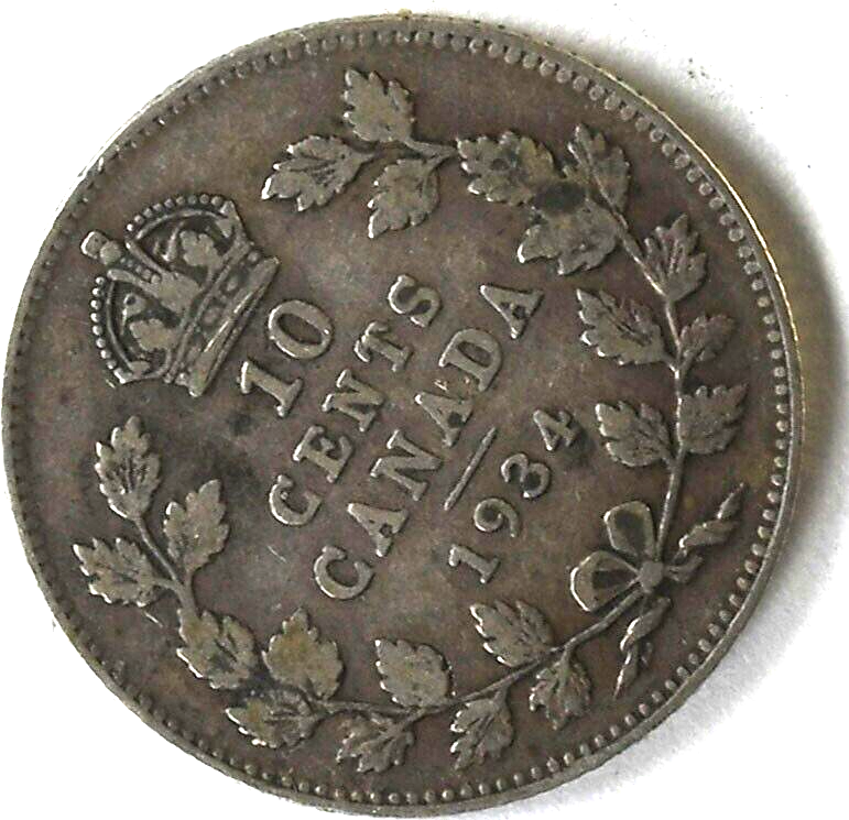 1934 Canada 10c Ten Cents Silver Coin Dime KM# 23a