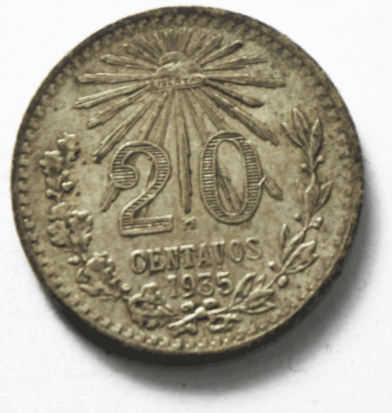 1935 Mexico Estados Unidos Mexicanos 20 Centavo Silver Coin KM# 438
