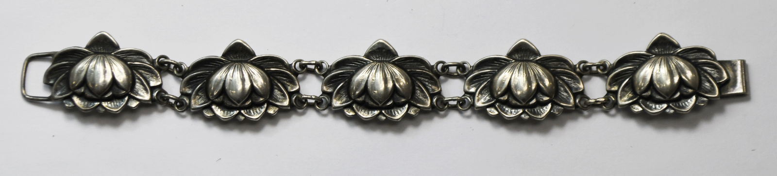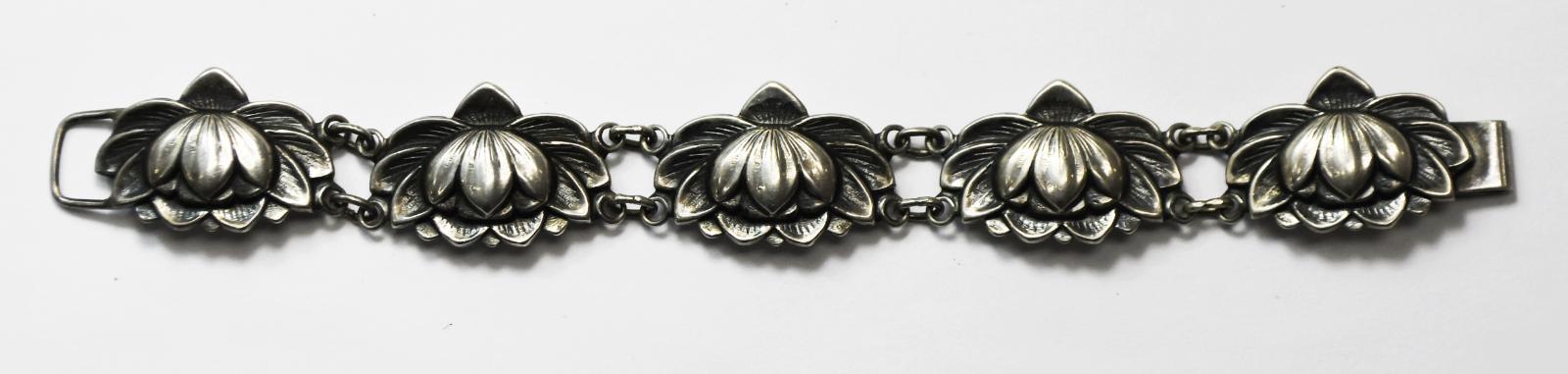 1940's Danecraft Sterling Silver Lily Pad Bracelet 21mm 7"