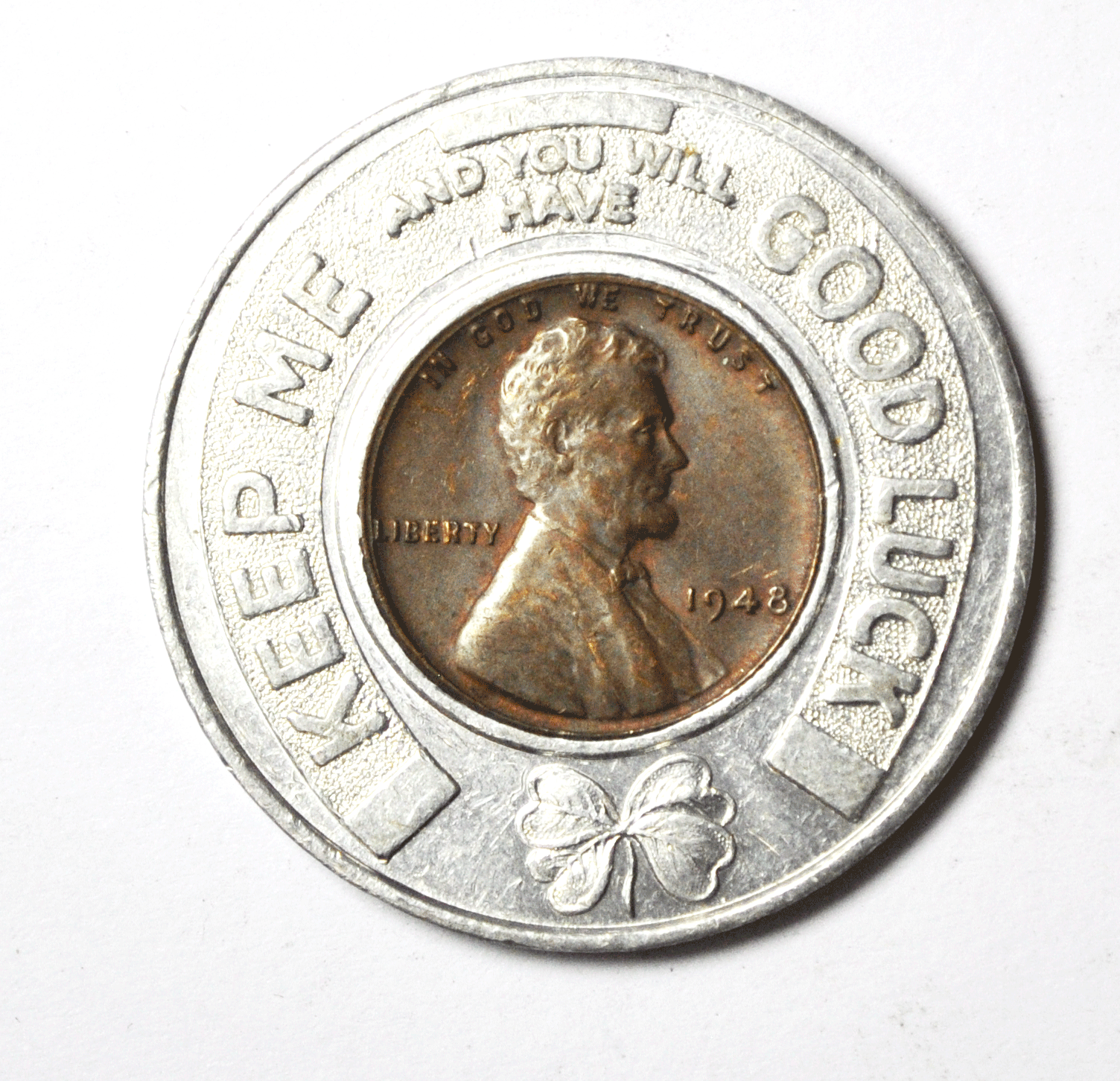 1948 1c Wheat Cent Encased Penny KC Safety Council Member I Practice Good Luck
