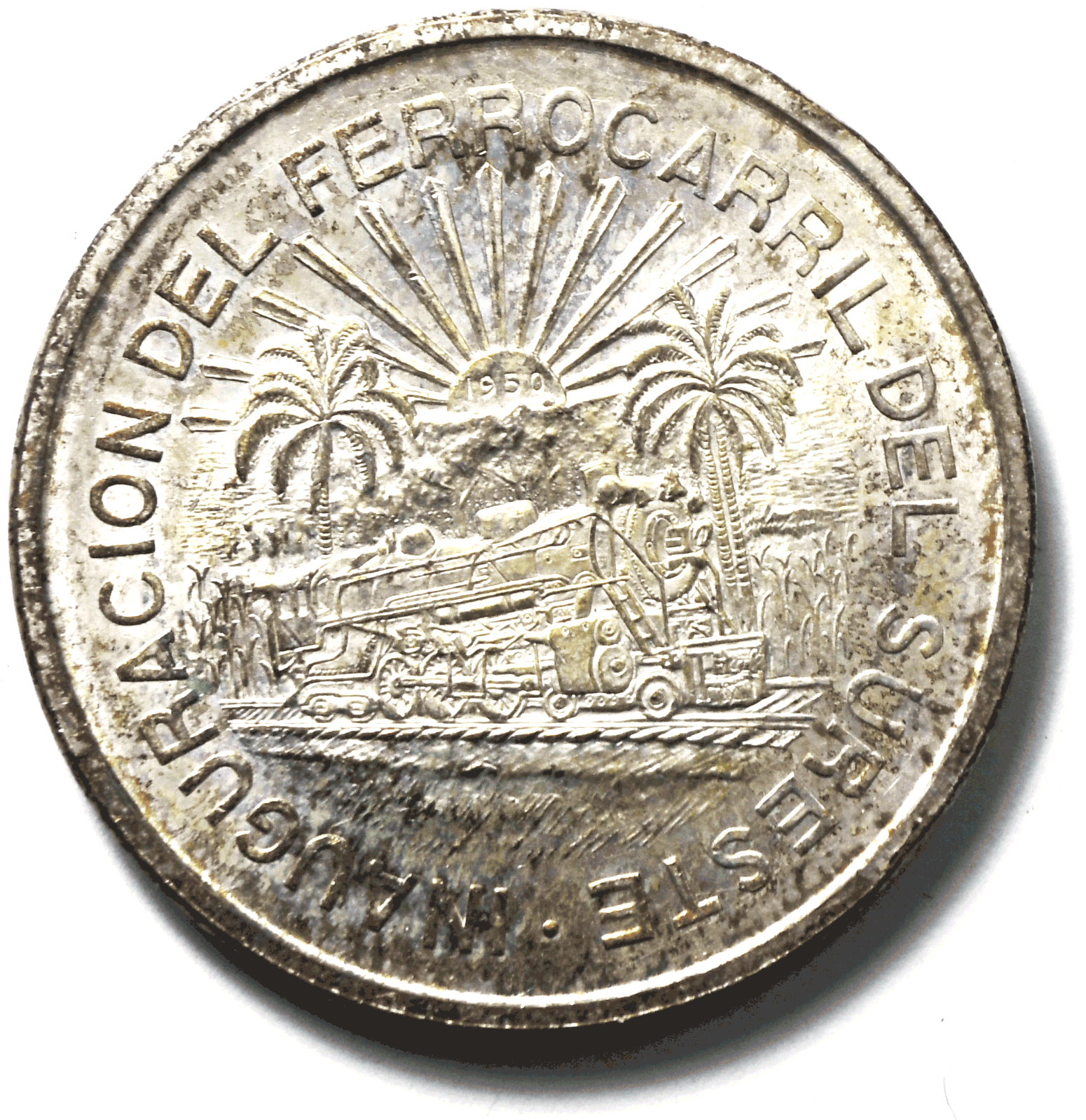 1950 Mexico Silver 10 Pesos Coin KM#466 Uncirculated Southeastern Railroad