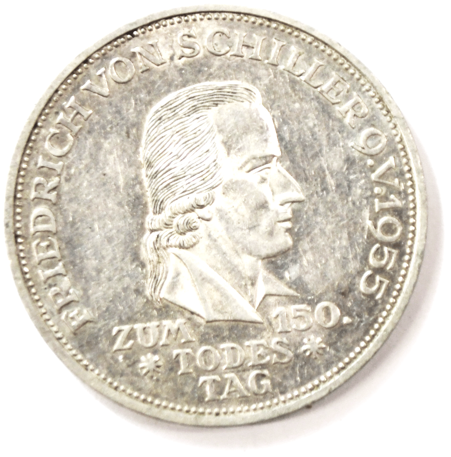 1955 F Germany Federal Republic 5 Mark Silver Coin KM#114 Friedrich Schiller