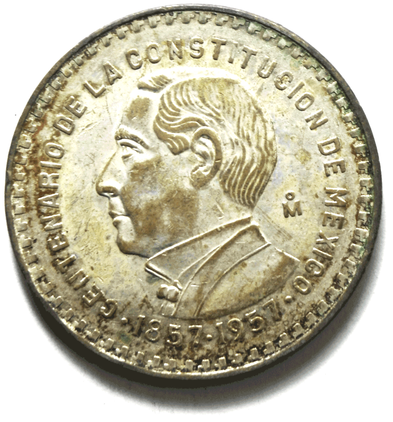 1957 Mexico Estados Unidos Mexicanos One Peso Silver Coin KM#458