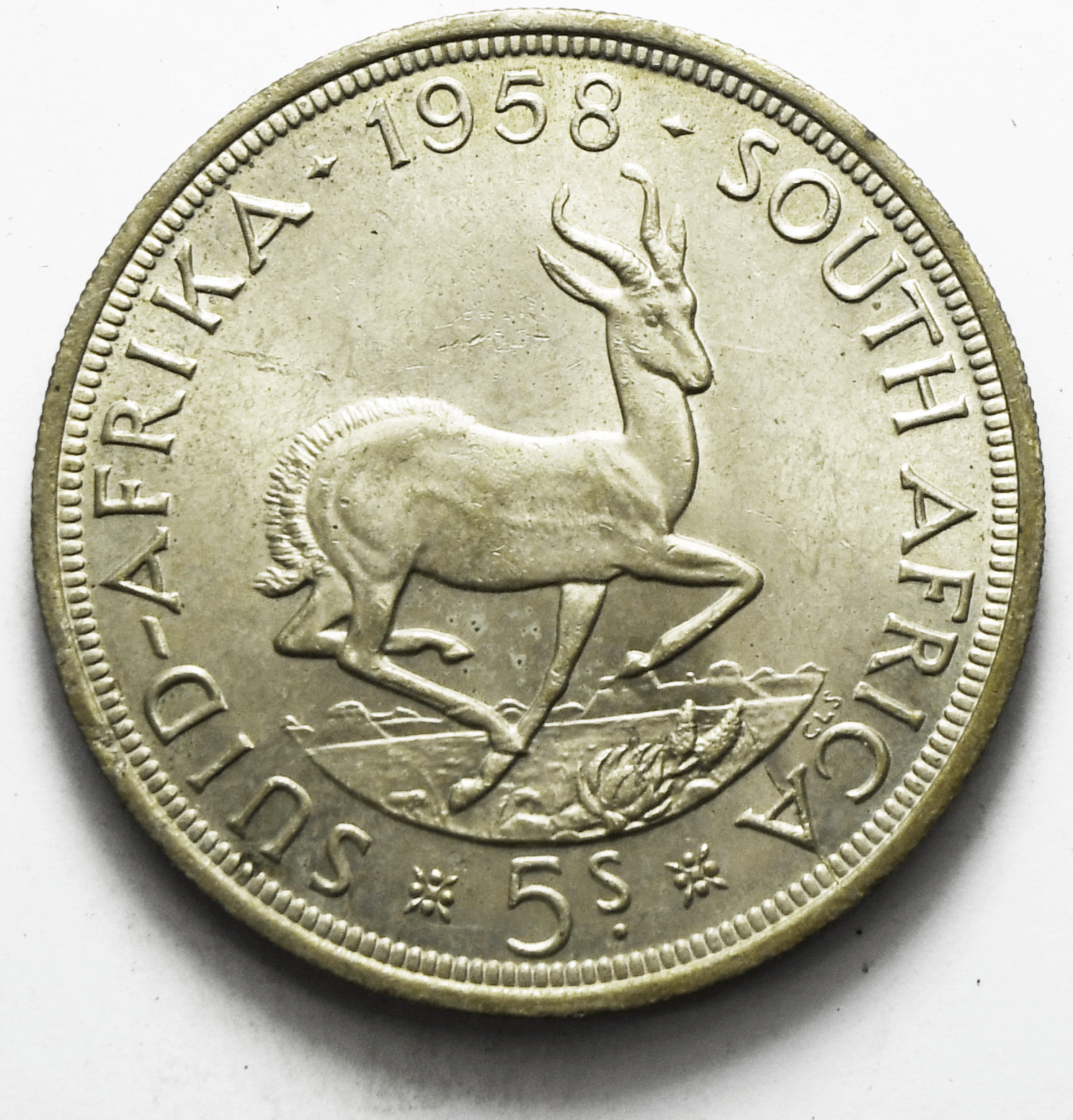 1958 South Africa 5 Five Shillings Silver Coin KM# 52