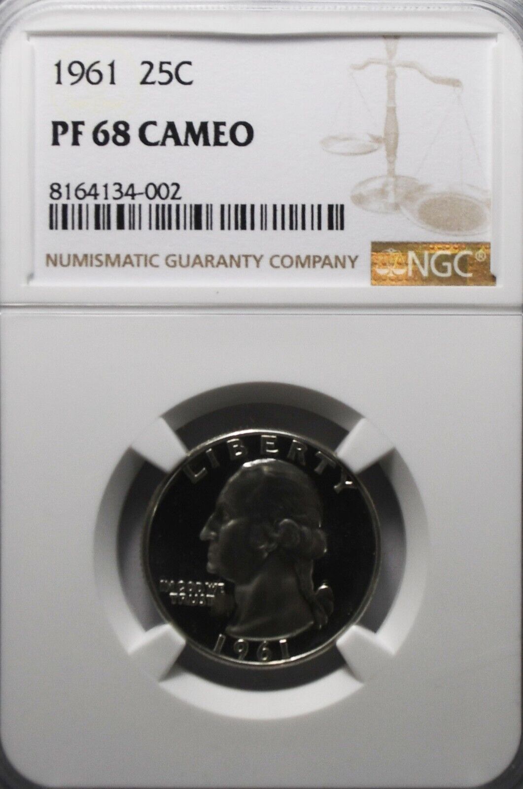1961 25c Washington Proof Silver Quarter Dollar NGC PF68 Cameo