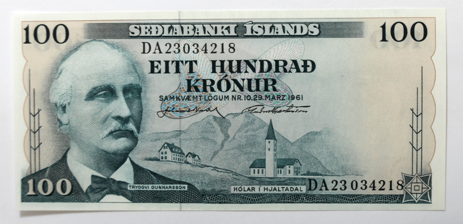 1961 Sedlabanki Iceland 100 One Hundred Kronur Note Uncirculated DA23034218