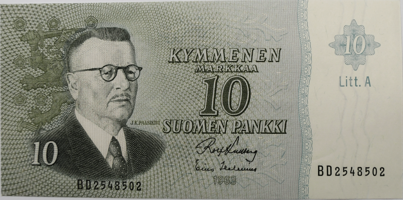 1963 Finland 10 Ten Markkaa Suoment Pankki Uncirculated Banknote BD2548502