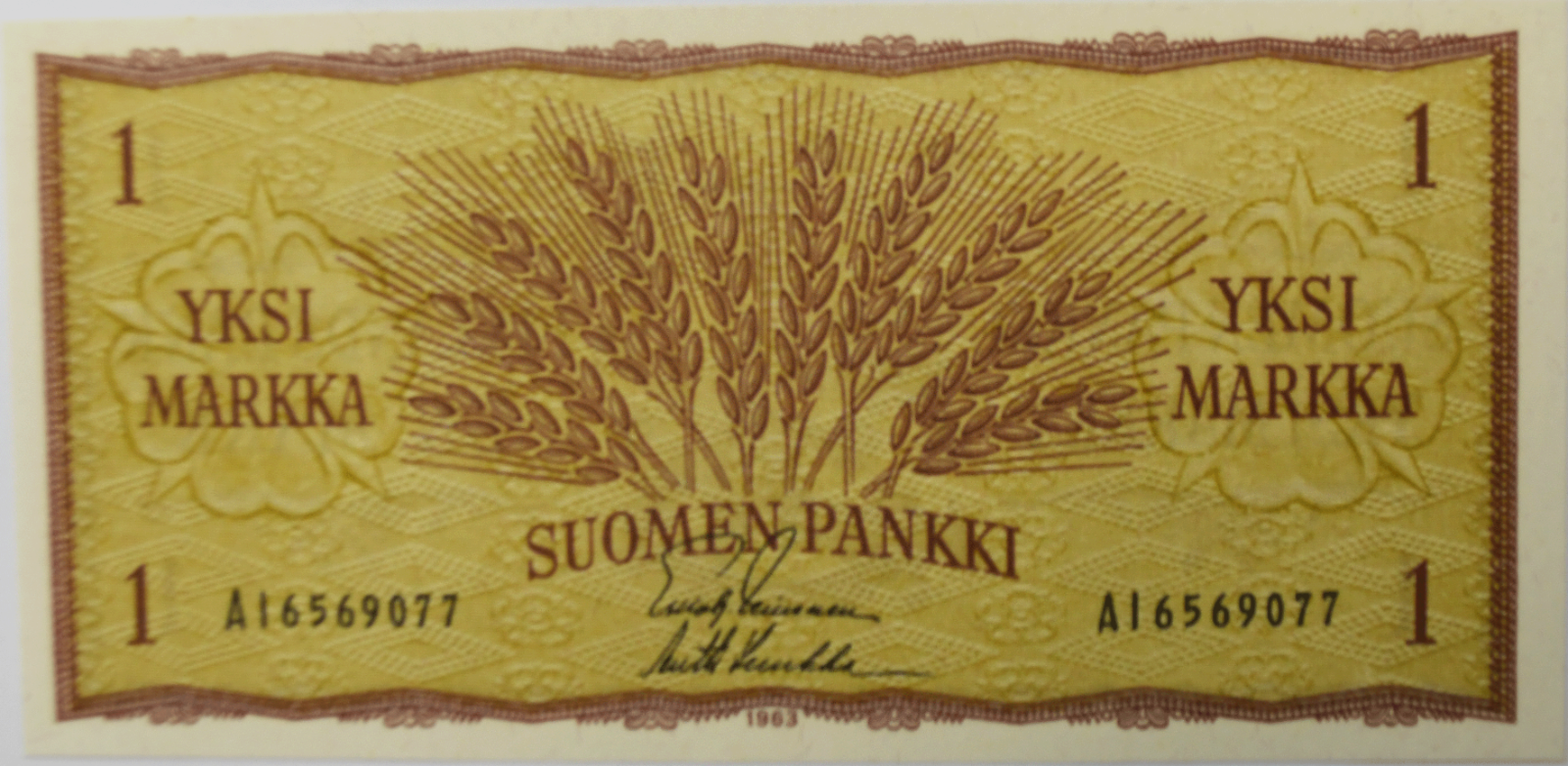 1963 Finland One Markkaa Suoment Pankki Uncirculated Banknote A16569077