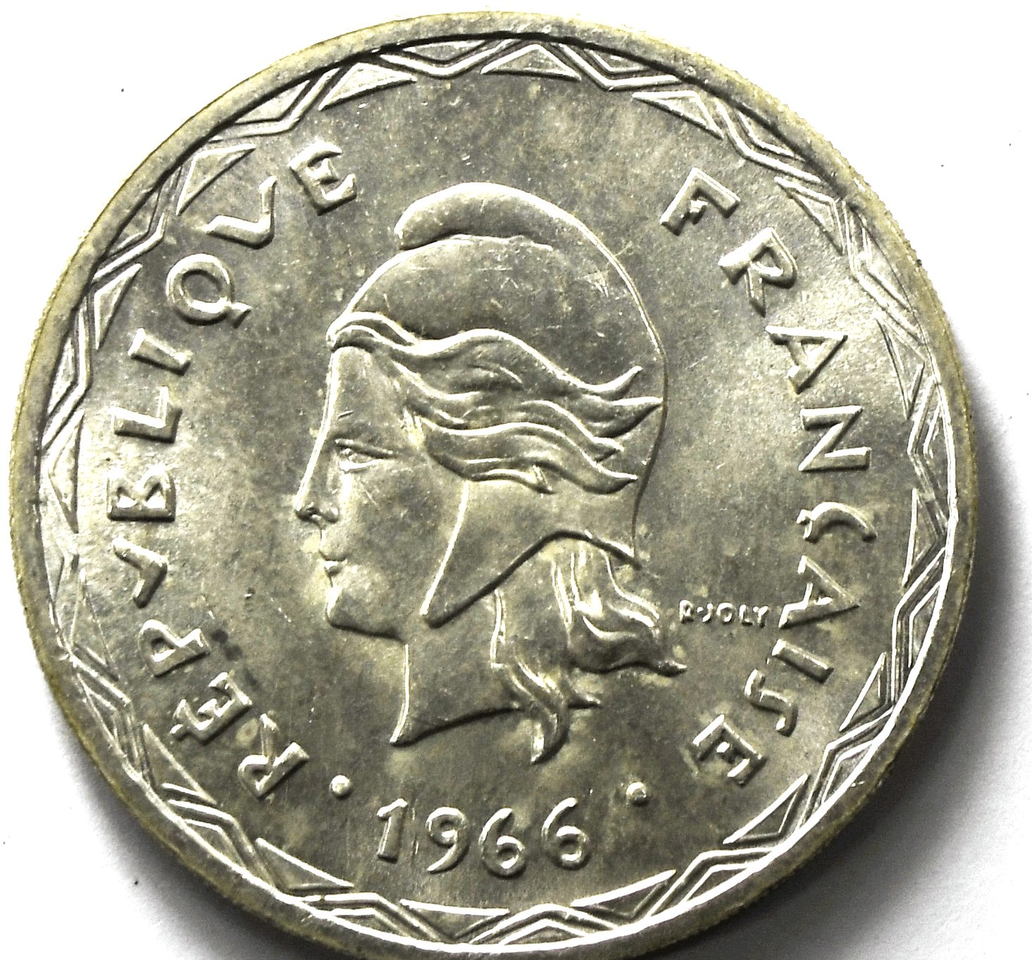 1966 New Hebrides 100 Hundred Francs Silver Coin KM# 1
