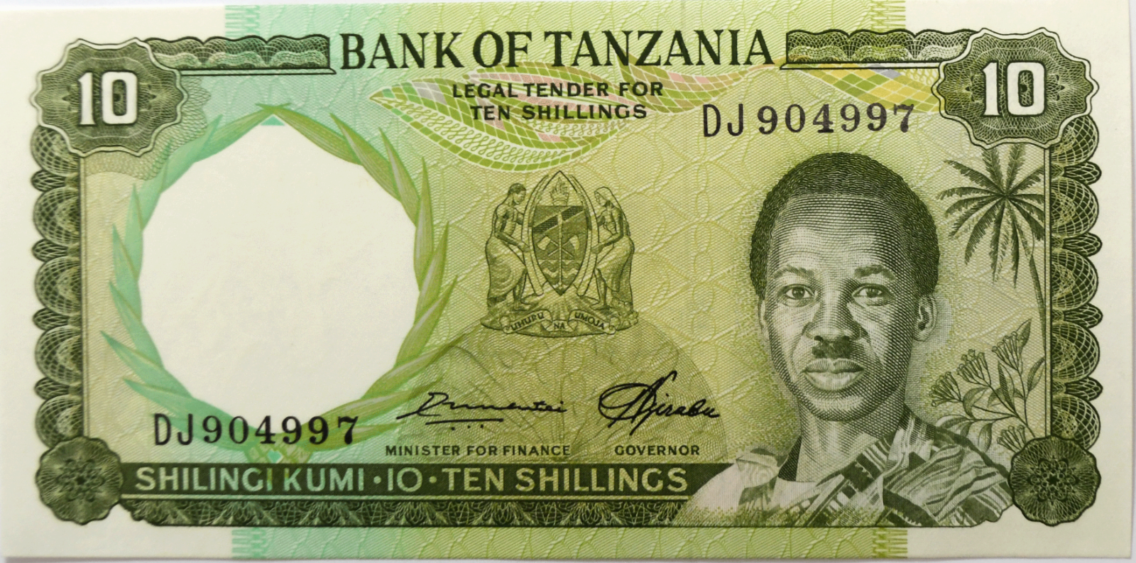 1966 Tanzania 10 Ten Shillings Uncirculated Banknote DJ 904997