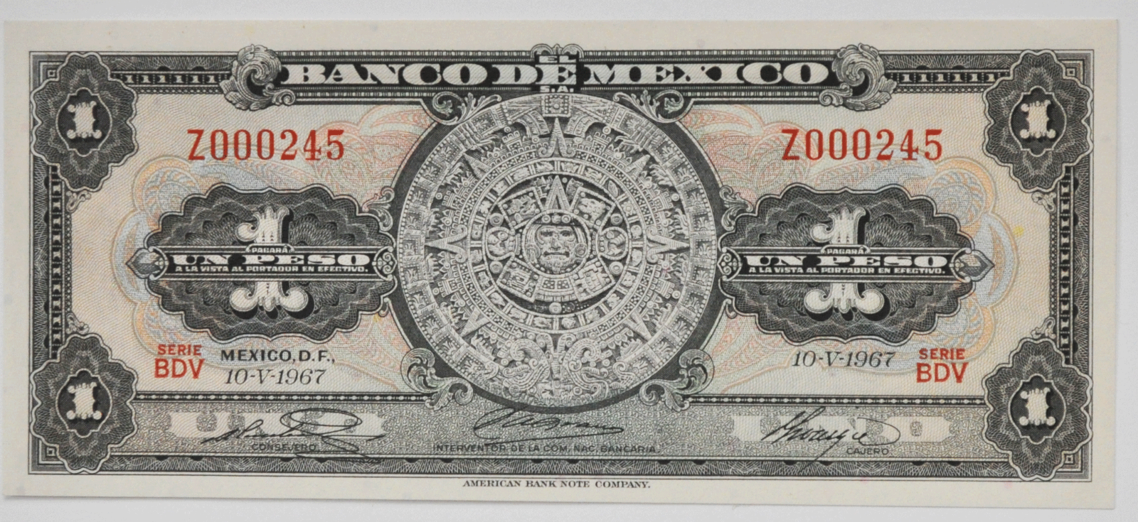 1967 Mexico One 1 Peso BDV Uncirculated Note Z000245