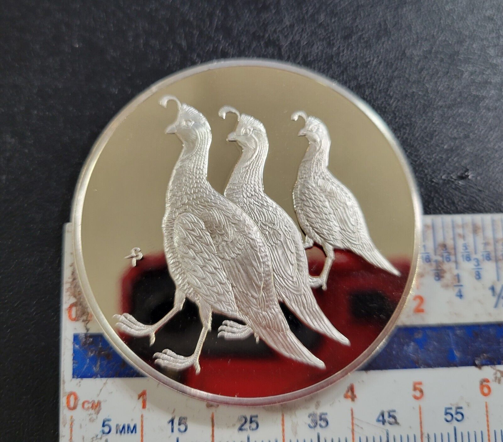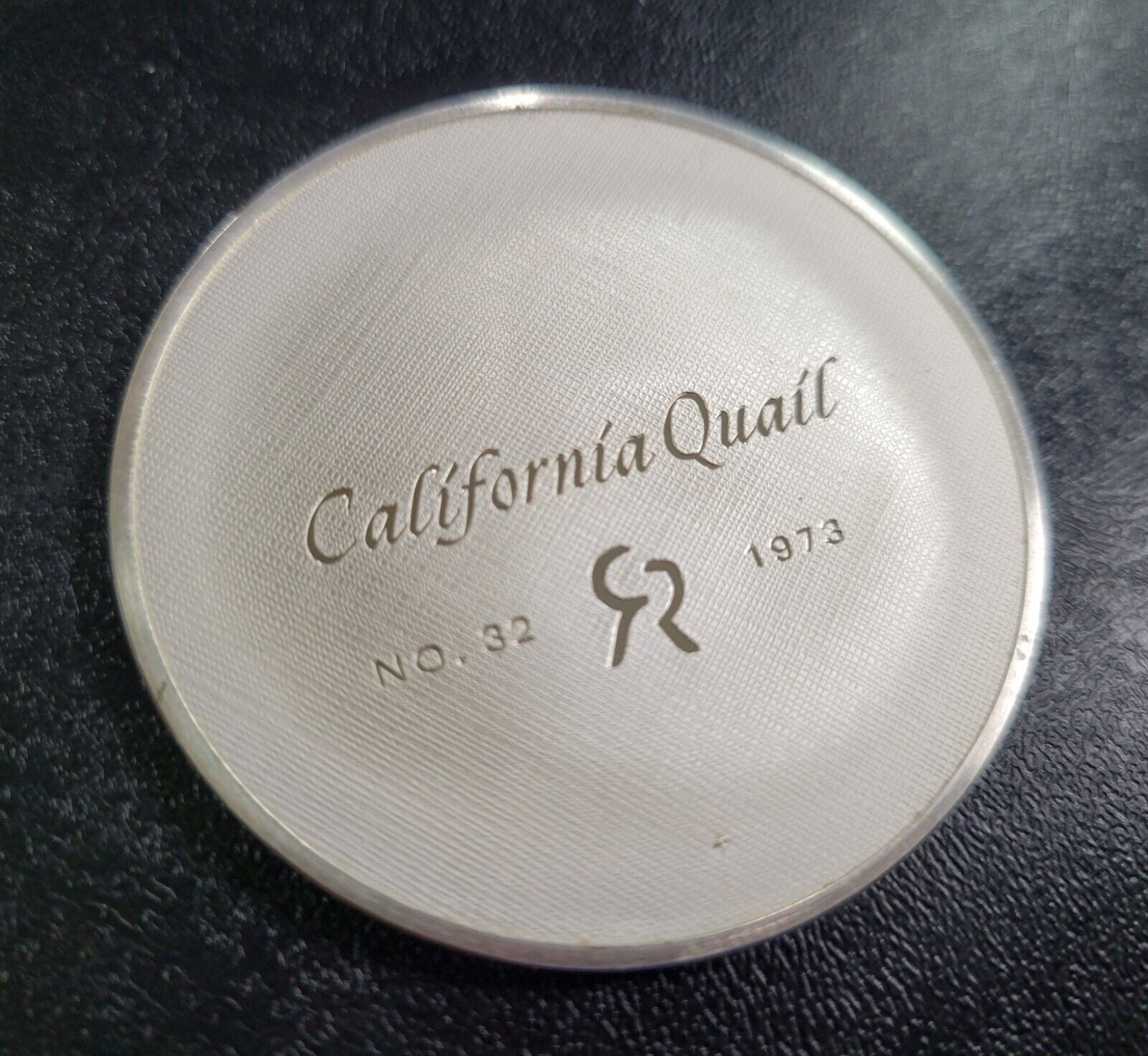 1973 California Quail Franklin Mint Solid Sterling Silver No.32. Weight is 2.1oz diameter is 2" across